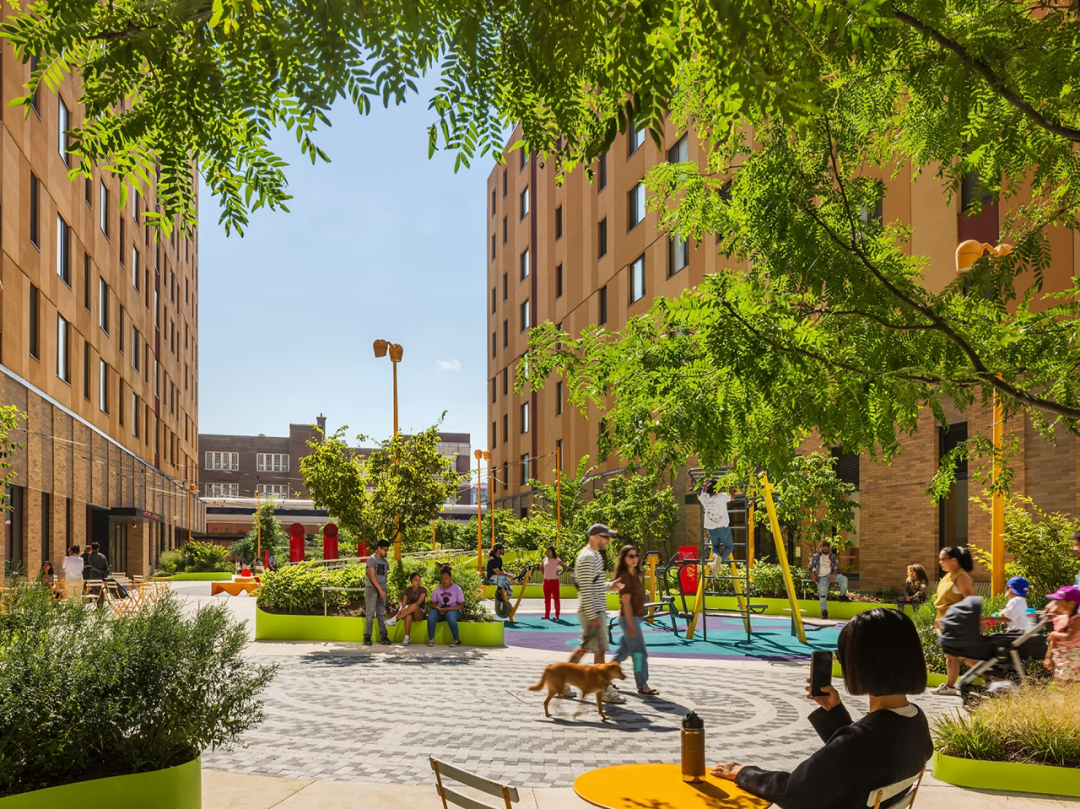 位于纽约曼哈顿东哈莱姆区(East Harlem)的绿色小径(Sendero Verde)项目,不仅是全球规模最大的被动式住宅区,为700多户家庭提供可持续的全保障住房,更通过细腻的景观设计,重塑了社区生活的温度与连接。
