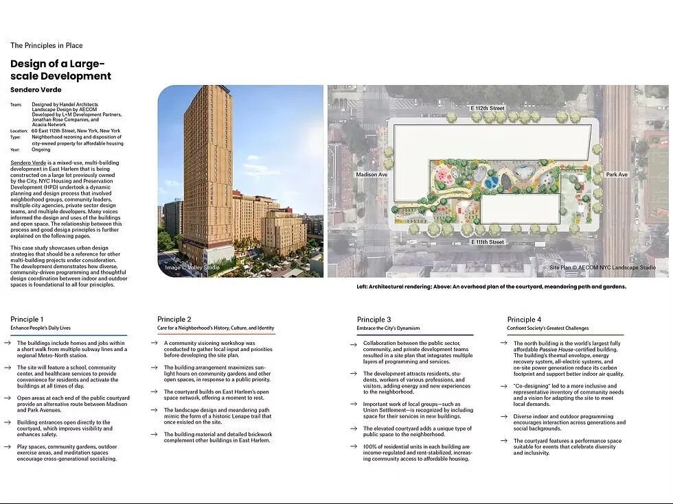 其卓越性亦获得权威认可 —— 被收录于纽约市《优秀城市设计原则》手册的 “大型开发项目设计” 章节,为未来城市更新与可持续社区建设提供重要参考。