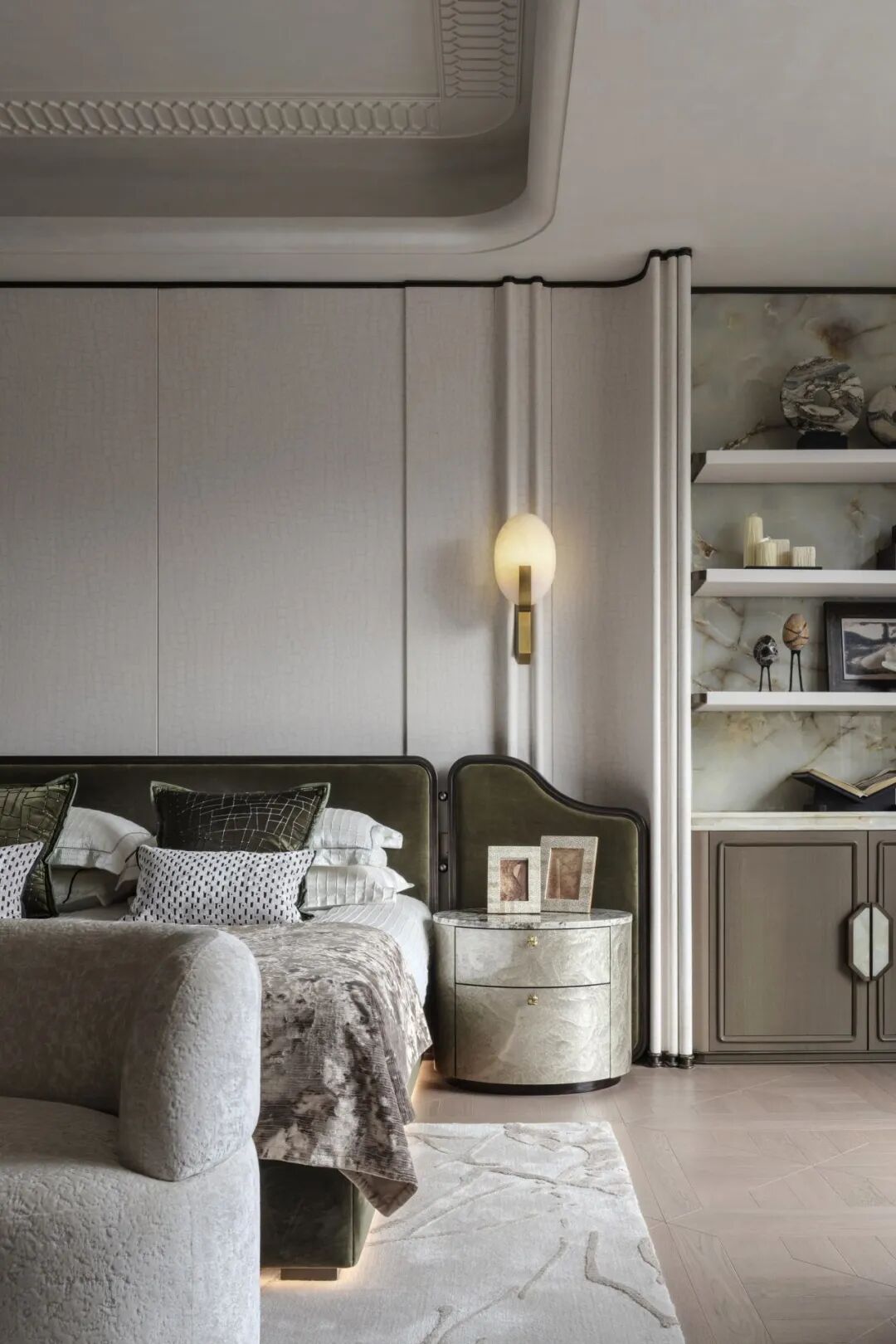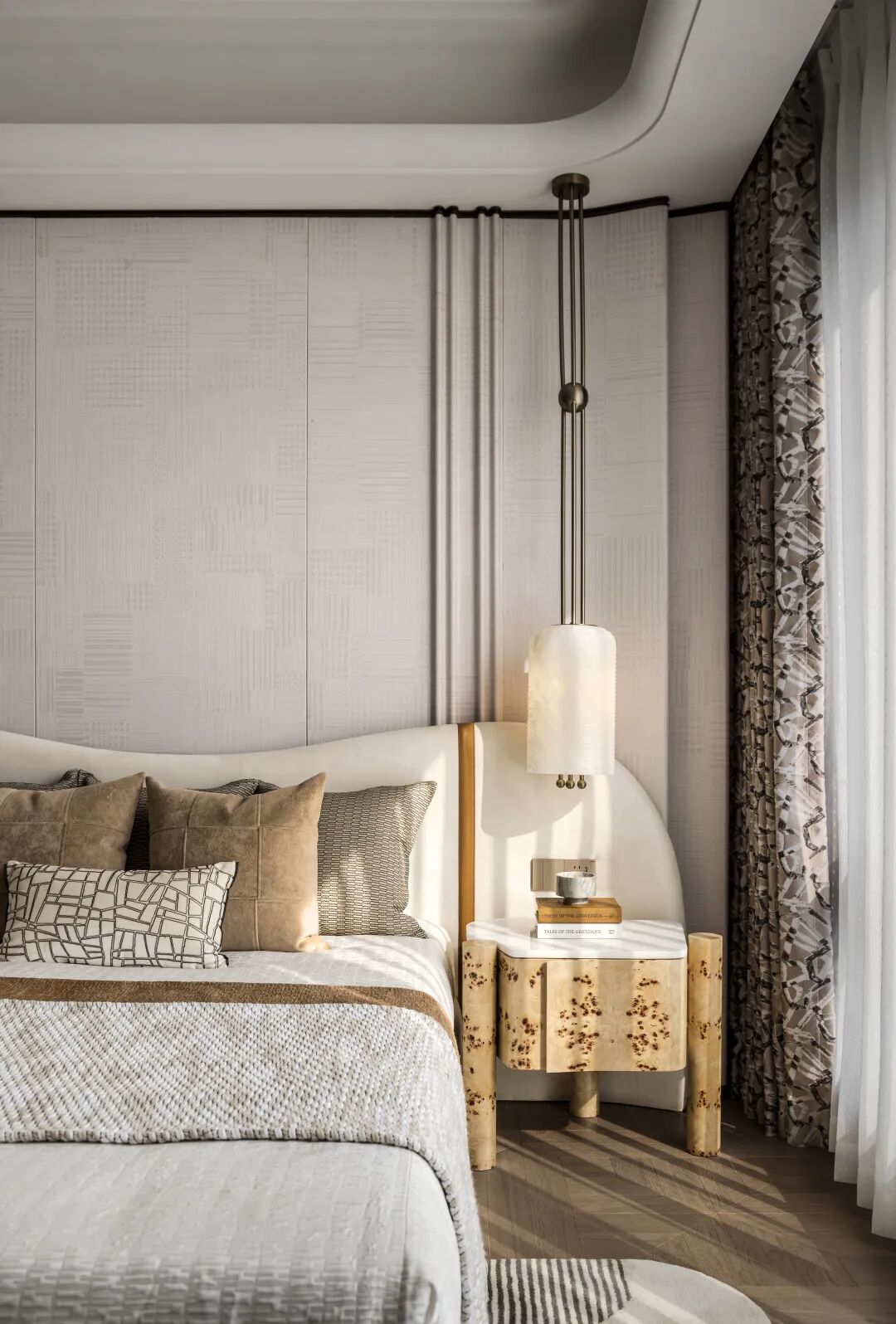 卧室空间的设计,以“静奢”为核心:把东方的恬适禅意,藏进现代风格的雅致质感里,让每一处私域,都成为卸下疲惫的松弛容器,连细节里都裹着苏州的温度。