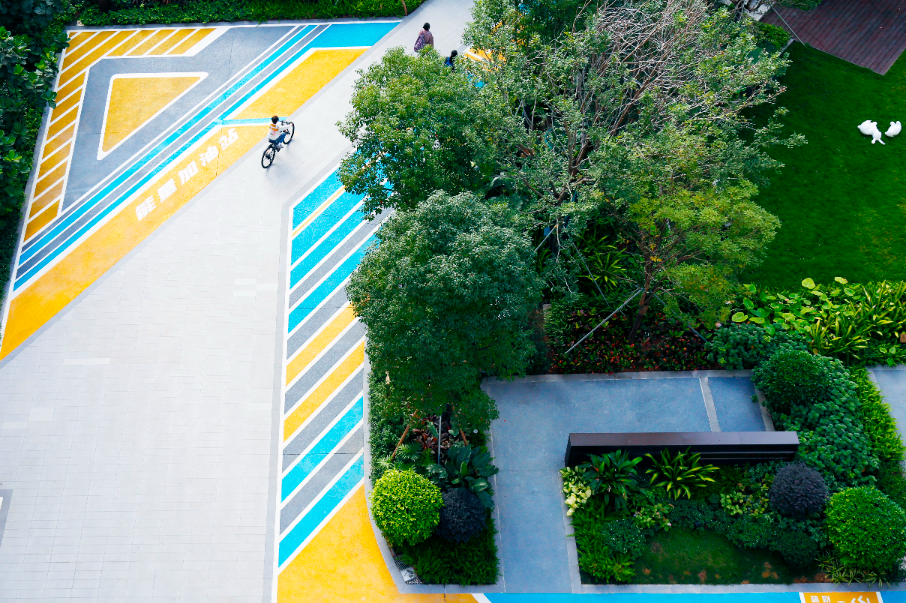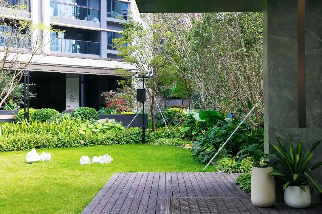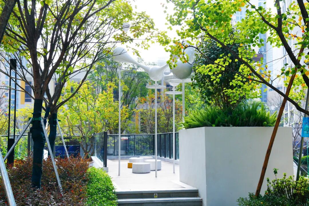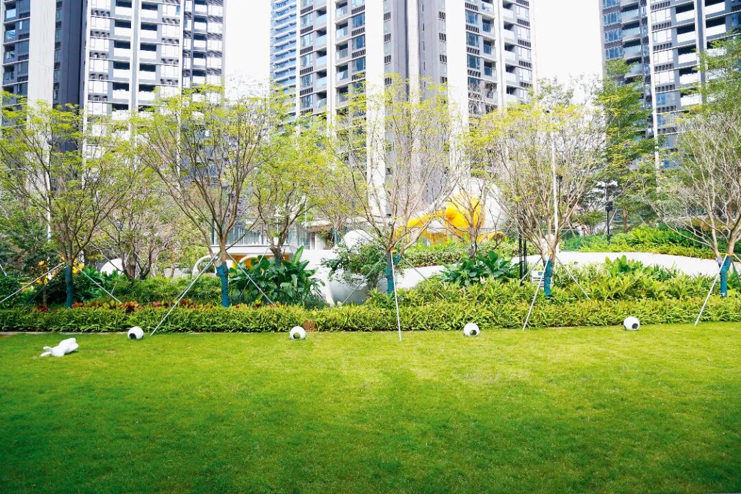 园区内设置的环形健身步道、东方禅意小品及智能灌溉系统,兼顾实用与美观。