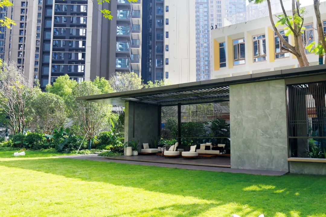 颐樾府项目地处龙华民治核心板块,定位为集生态宜居、智慧便捷、人文底蕴、圈层社交于一体的高端住宅。项目总绿化面积约1.9万㎡,绿化率达55%,通过“乔灌草藤”四层立体绿化搭配,打造“四季有景、步移景异”的高端住区体验。