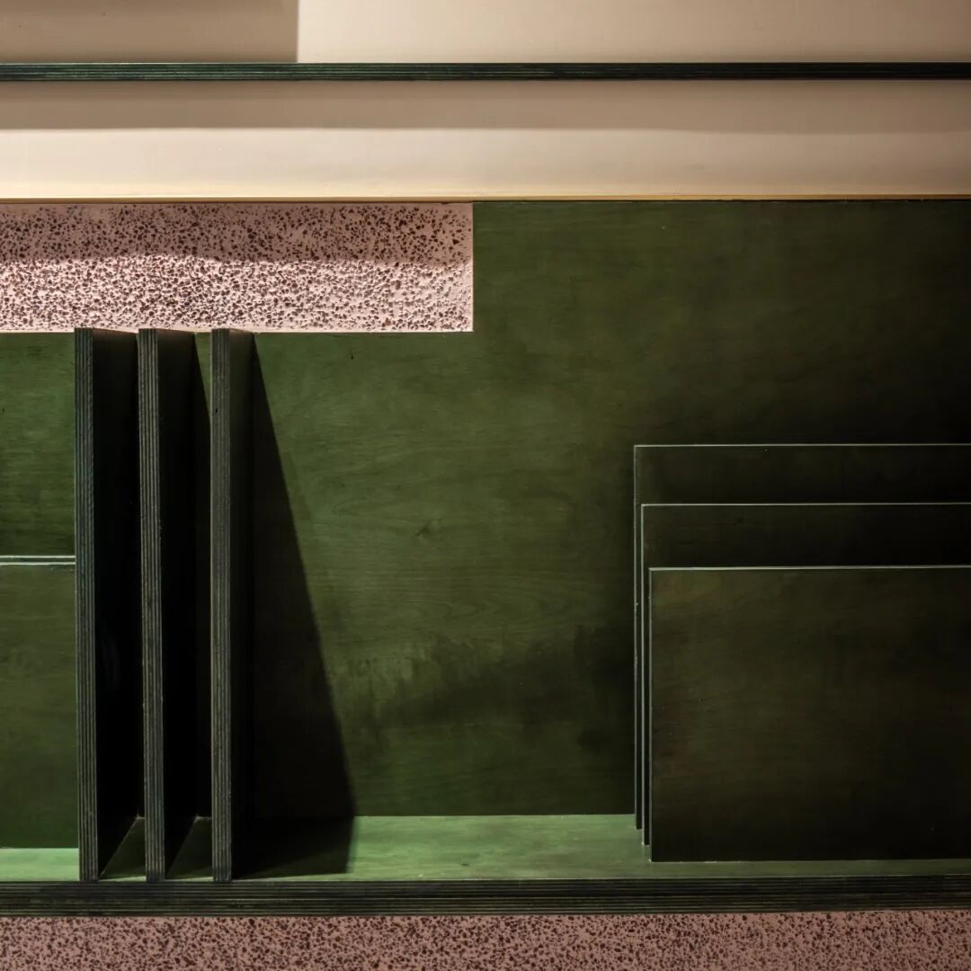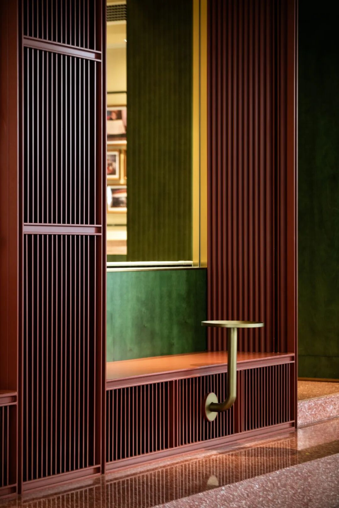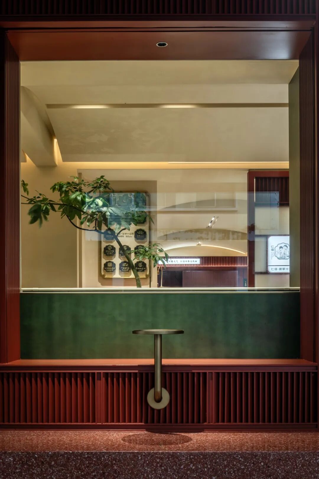 局部采用民国绿的海洋板点缀,打破单一色调的沉闷感,让门店在街区场景中兼具辨识度与文化共鸣,同时赋予整体场景通透的呼吸感。-