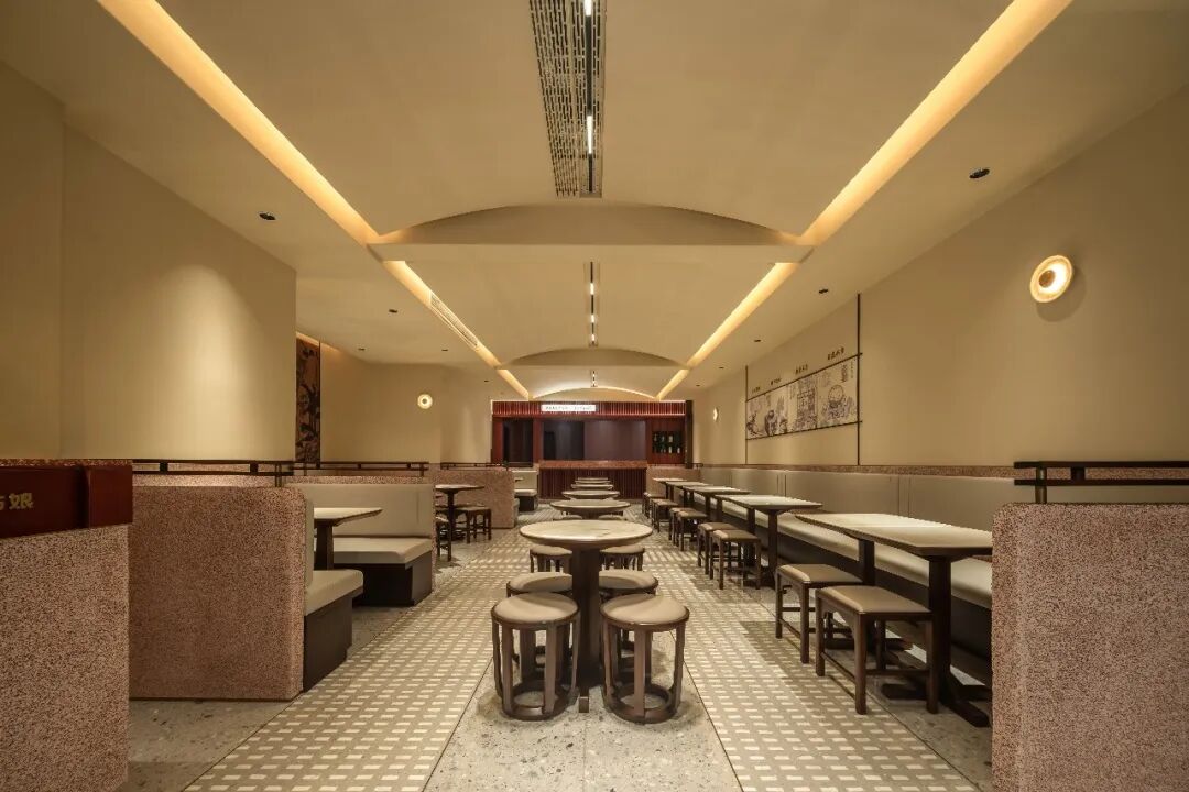 兼顾功能与美学,既增强空间视觉纵深感、实现餐厨区互通,优化取送餐动线以提升运营效率。