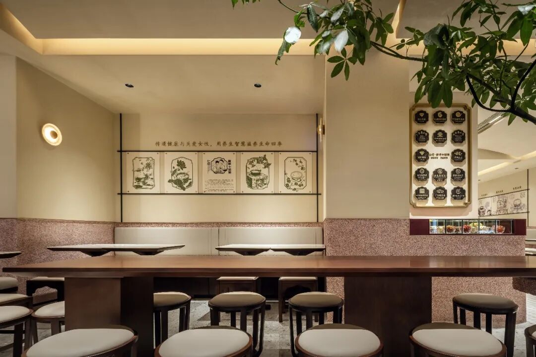 不仅丰富了空间的视觉层次,更让“康家·十姑娘”的品牌故事与养生理念在潜移默化中触达消费者,彰显品牌浓厚的文化底蕴。