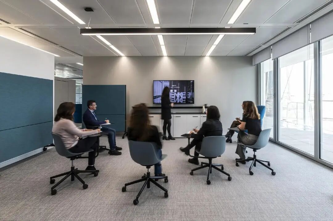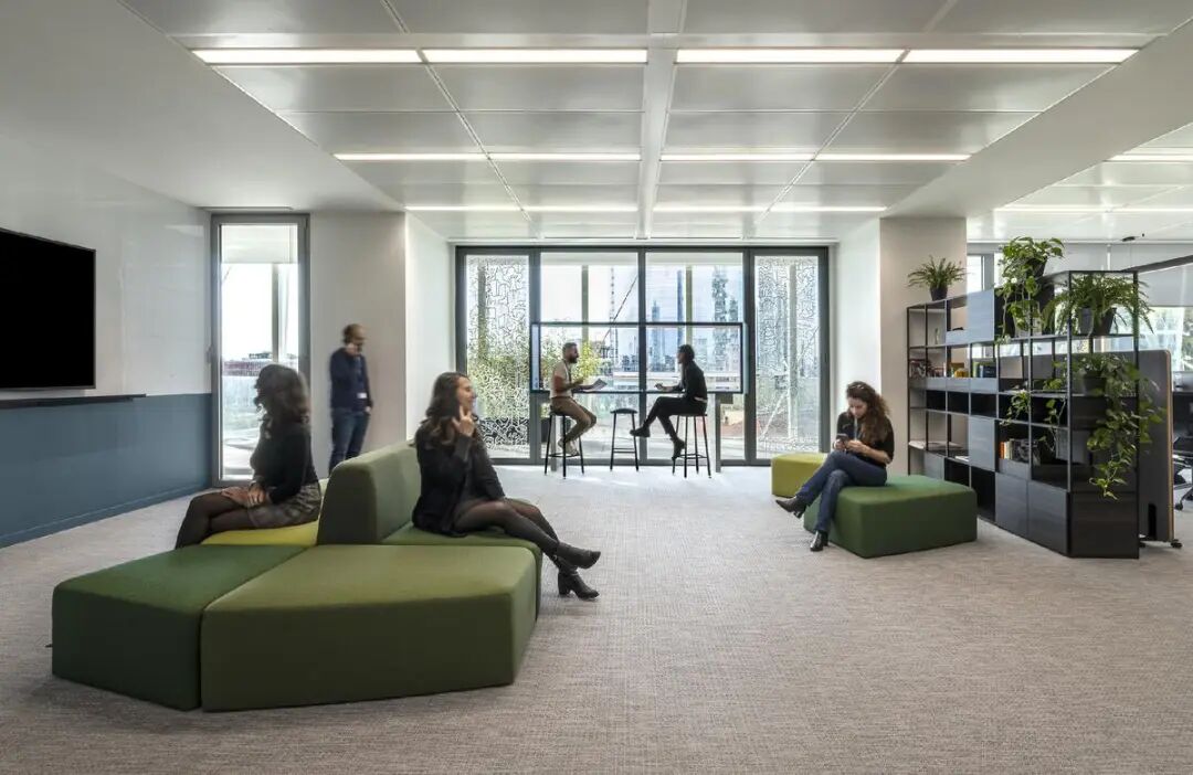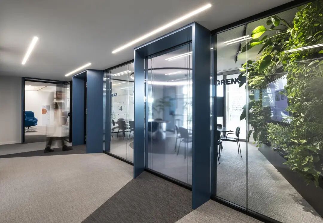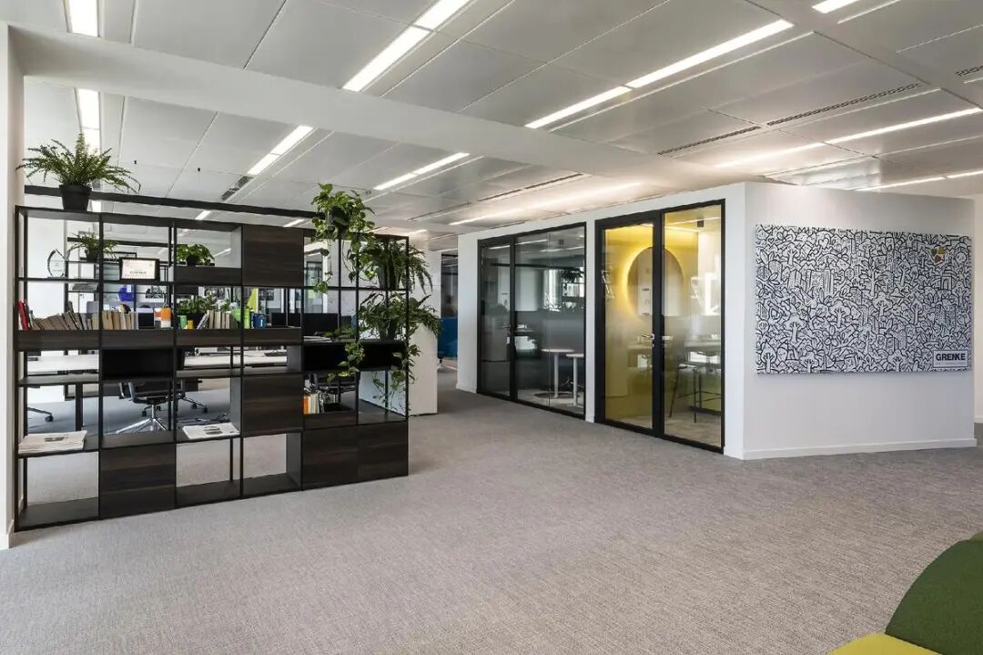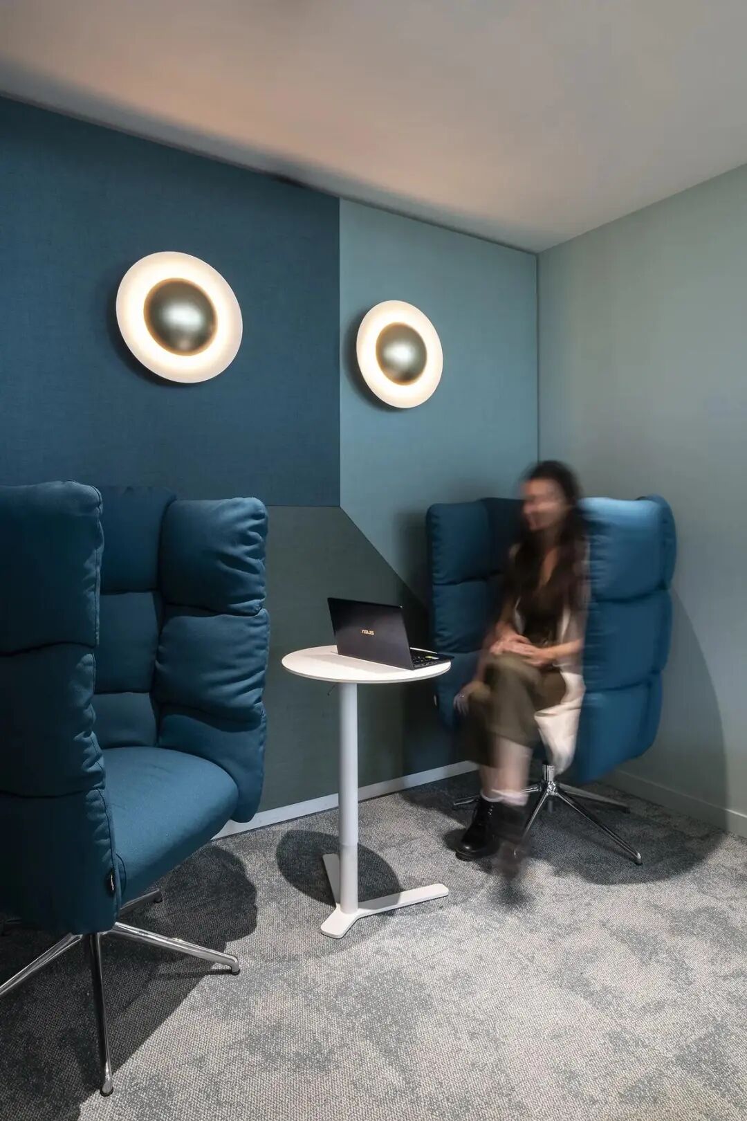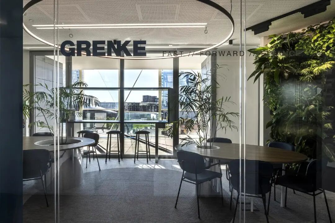 这不仅是装饰的升级,更是一场深刻的办公哲学转型。GRENKE通过环境心理学与亲生命设计,将物理空间重构为「创意孵化系统」:可书写的墙面记录着即兴讨论,模块化家具支持着灵活协作,甚至连灯光与声学都经过精密测算,以降低疲劳、激发专注。在这里,福祉不是福利清单,而是生产力本身——因为它直接塑造着人的状态、团队的化学反应与创意的诞生频率。