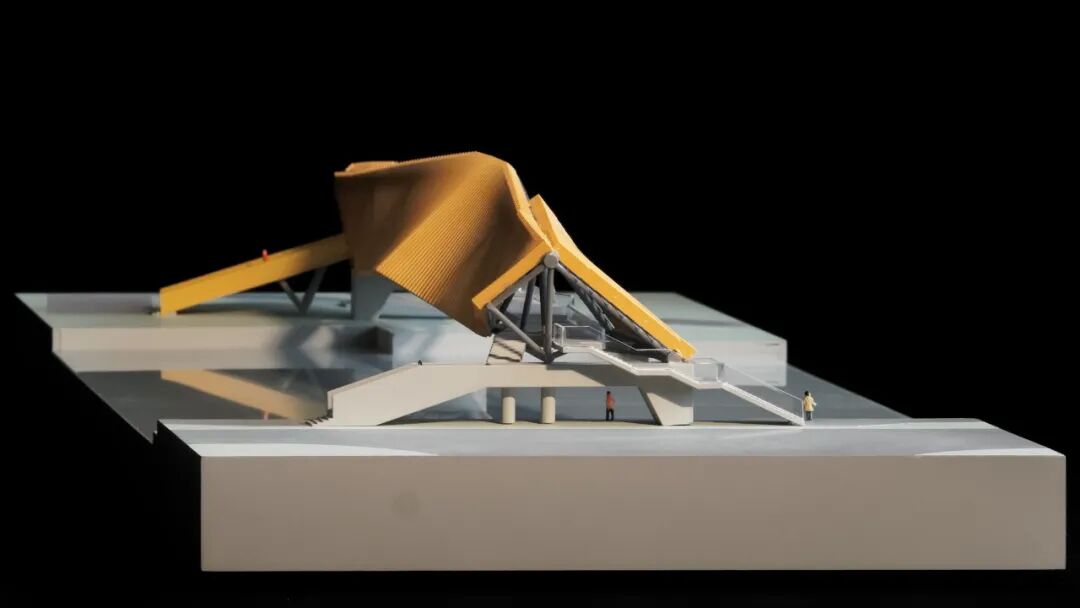 为此,便于整体吊装的三角锥桁架体系是较为合理的技术选项。尽管通过结构师的精心优化,桥梁结构杆件仍因其跨度原因不可避免地较为粗壮。穿越此单元重复的大跨结构的空间体验,是设计展开的主要线索。