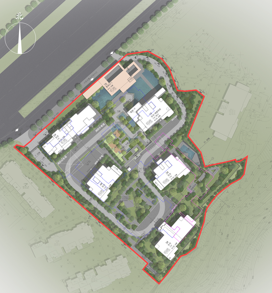 重庆市两江新区金开大道是一条印证重庆生命力的城市发展主轴,也是重庆市老牌豪宅的聚集地。项目坐落于金开大道南侧,地块东北侧是天华的另一个作品金茂璞印金开。这块用地南临悬崖,拥有天然的眺望金山公园和城市天际线的极致视野,闹中取静,拥有极佳的景观资源,天然就具有自然隐逸、静谧典雅的项目气质。地块用地面积仅15692㎡,容积率1.03,是金开大道两侧“小而美”的绝版地块。