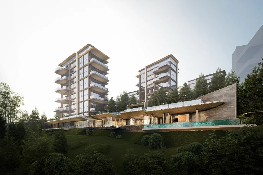 “隐于市,奢于心”,我们融合了极致私密性与生活美学,将会所布置于崖壁之上。简洁的玻璃盒子和富有张力的横向线条构成会所的立面形象。高踞于上,凭栏远眺,远借公园之景,实现“林中有居、居外无界”的理想栖居图景。