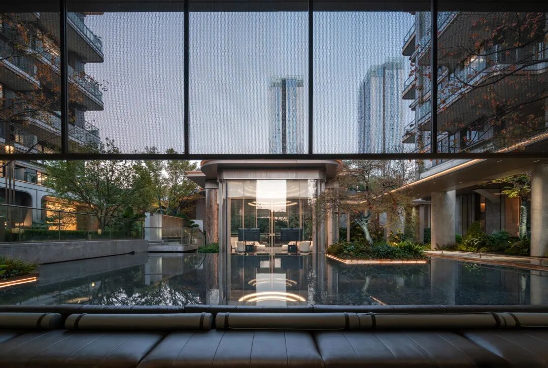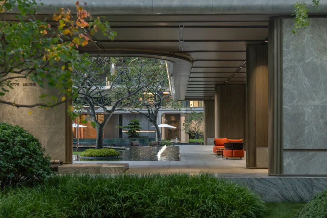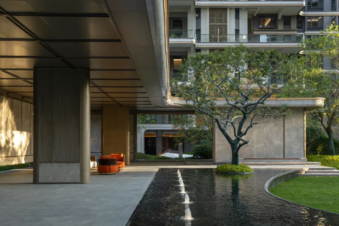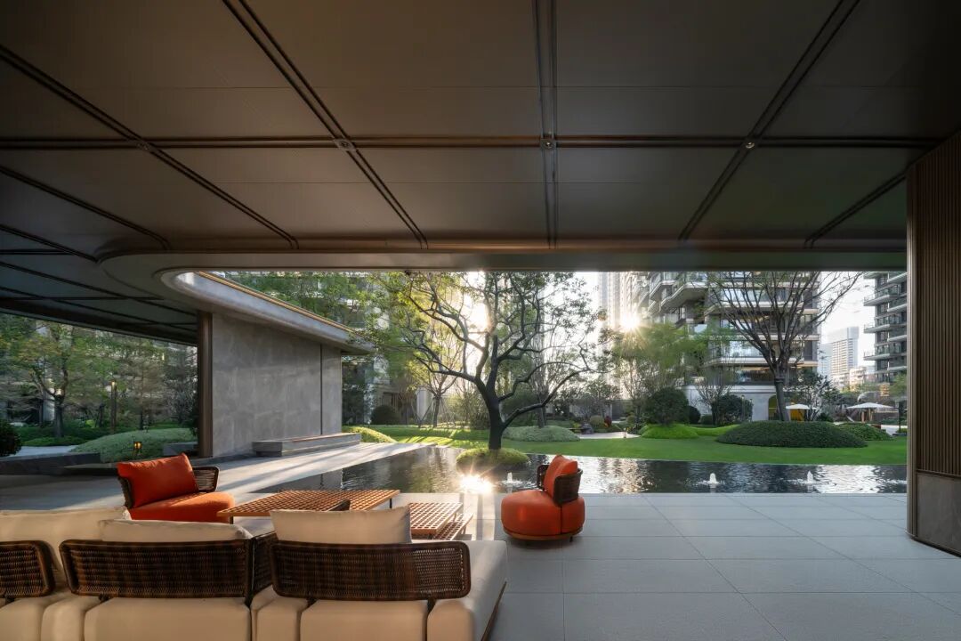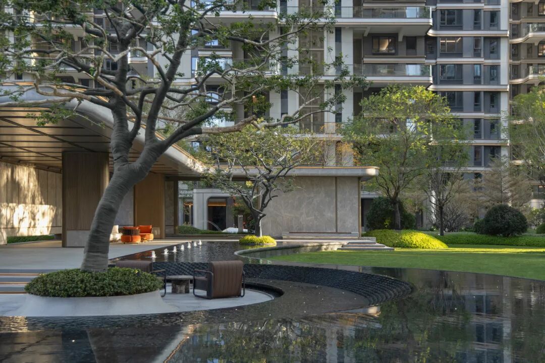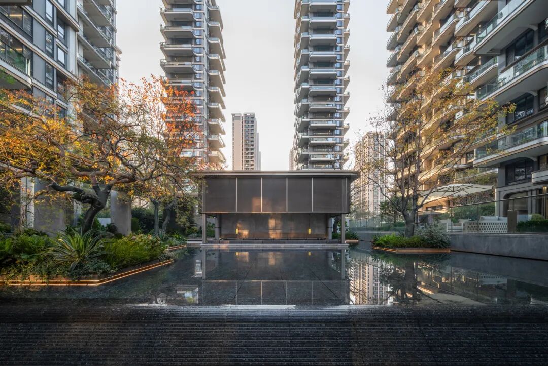 奢享玲珑水院华庭,在下沉庭院中感受空间的无限延伸,天然奢石打造的精奢品质景墙,体验臻品工艺的高定生活,通过镜面跌水的链接引入实现空间层次的碰撞,同时更加生动的展示出水空间动静结合的与其丰富性,特选的水院乌桕更是在水面的掩映下光华流转倾听着自然的奥妙。林影葱葱洒落于水雾氤氲的空间里,起承转合光影流转间的艺术表达。