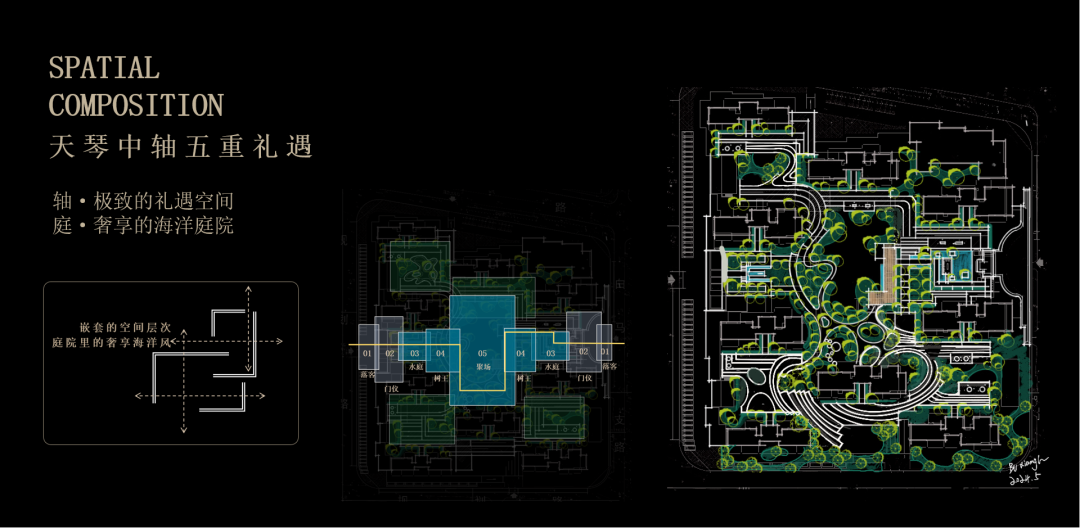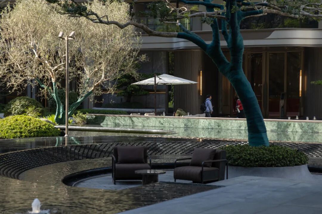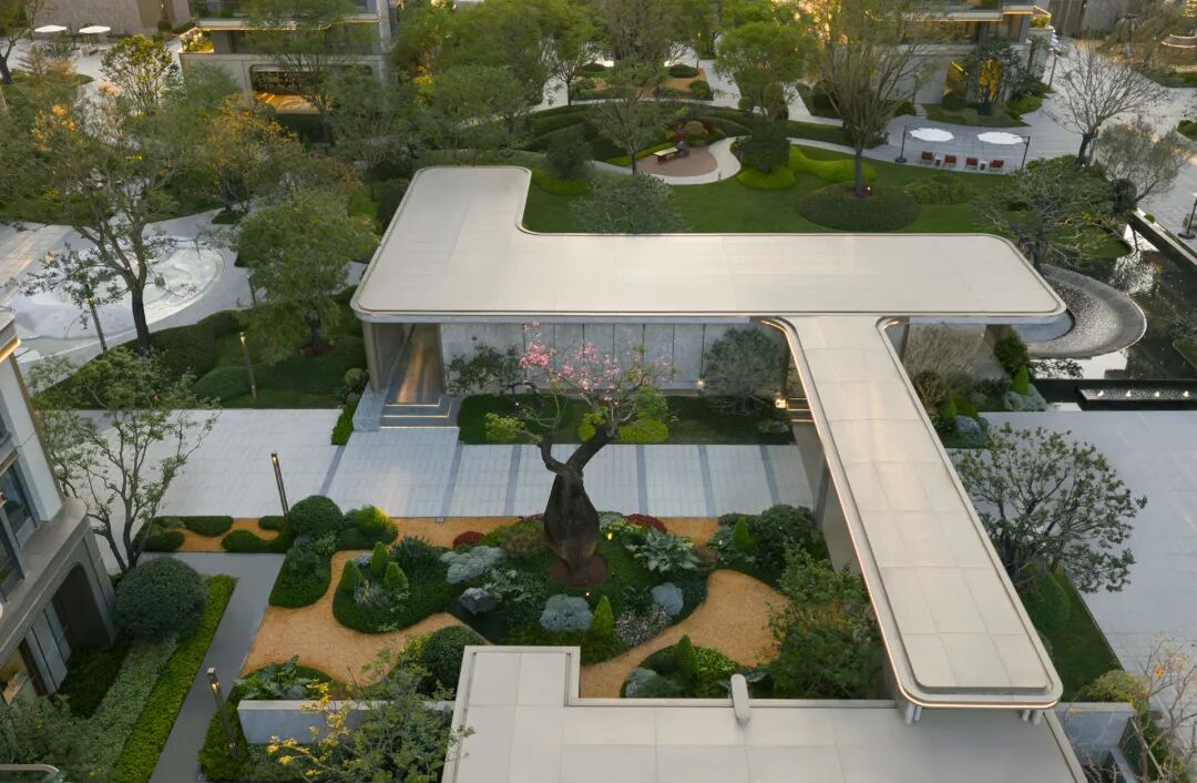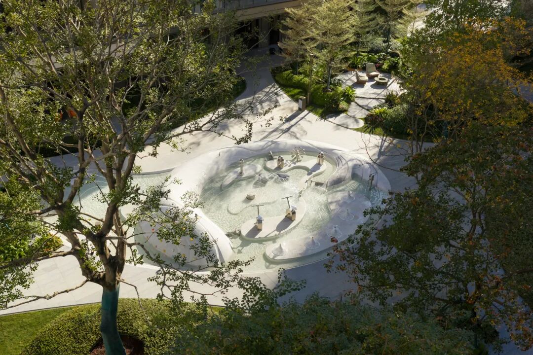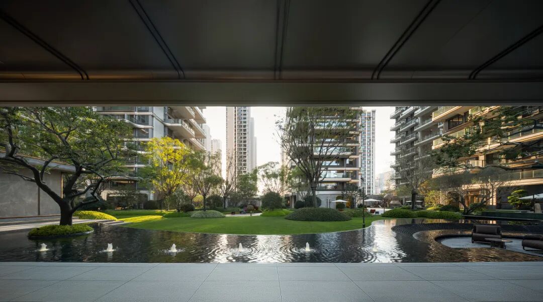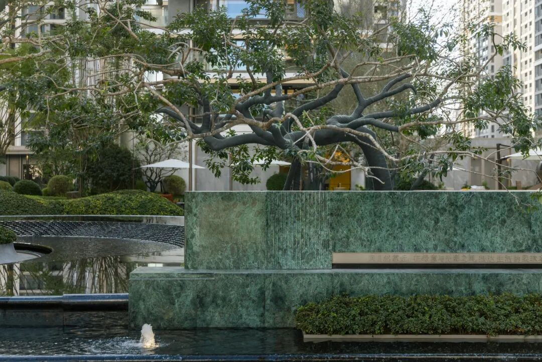 奢享玲珑水院华庭,在下沉庭院中感受空间的无限延伸,天然奢石打造的精奢品质景墙,体验臻品工艺的高定生活,通过镜面跌水的链接引入实现空间层次的碰撞,同时更加生动的展示出水空间动静结合的与其丰富性,特选的水院乌桕更是在水面的掩映下光华流转倾听着自然的奥妙。林影葱葱洒落于水雾氤氲的空间里,起承转合光影流转间的艺术表达。