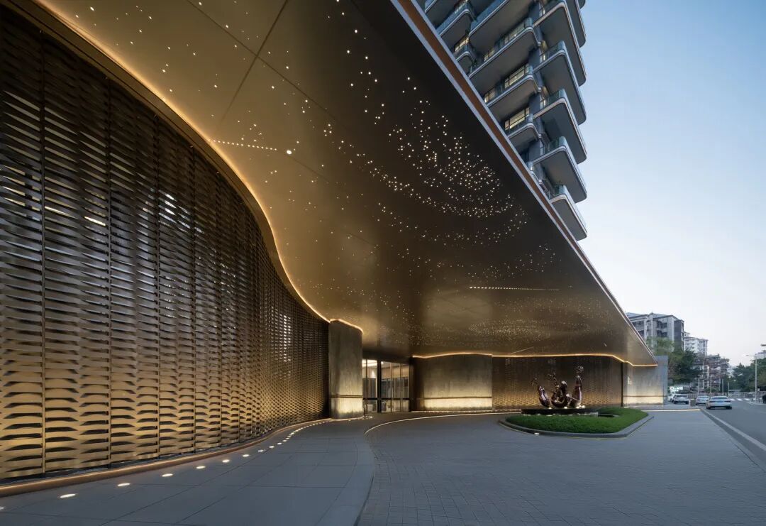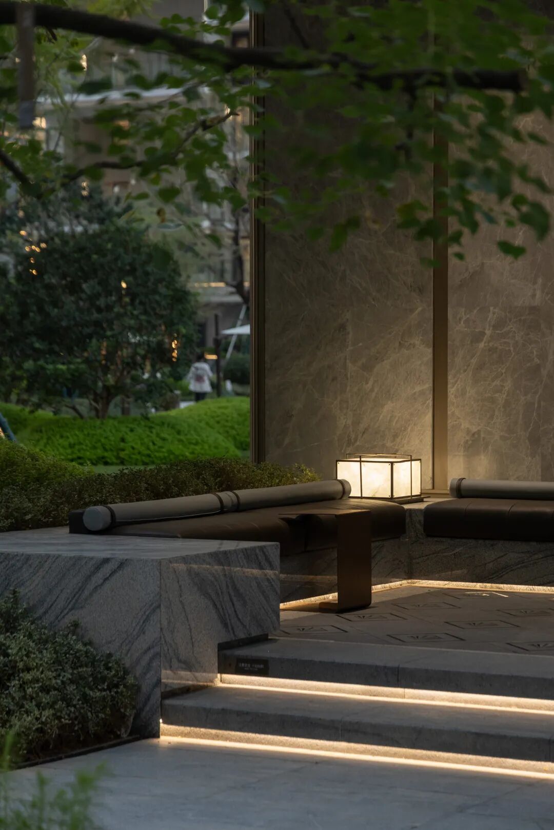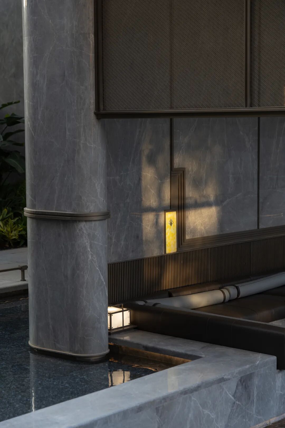 外观上的选材、表皮纹理的选型、檐口景墙的精工雕琢使其风采熠熠,自然礁石与阶梯的巧妙拼接更使其空间气质更进一步的升华。以自然之力赋予城市新生,于自然空间里的典藏奢美呈现。