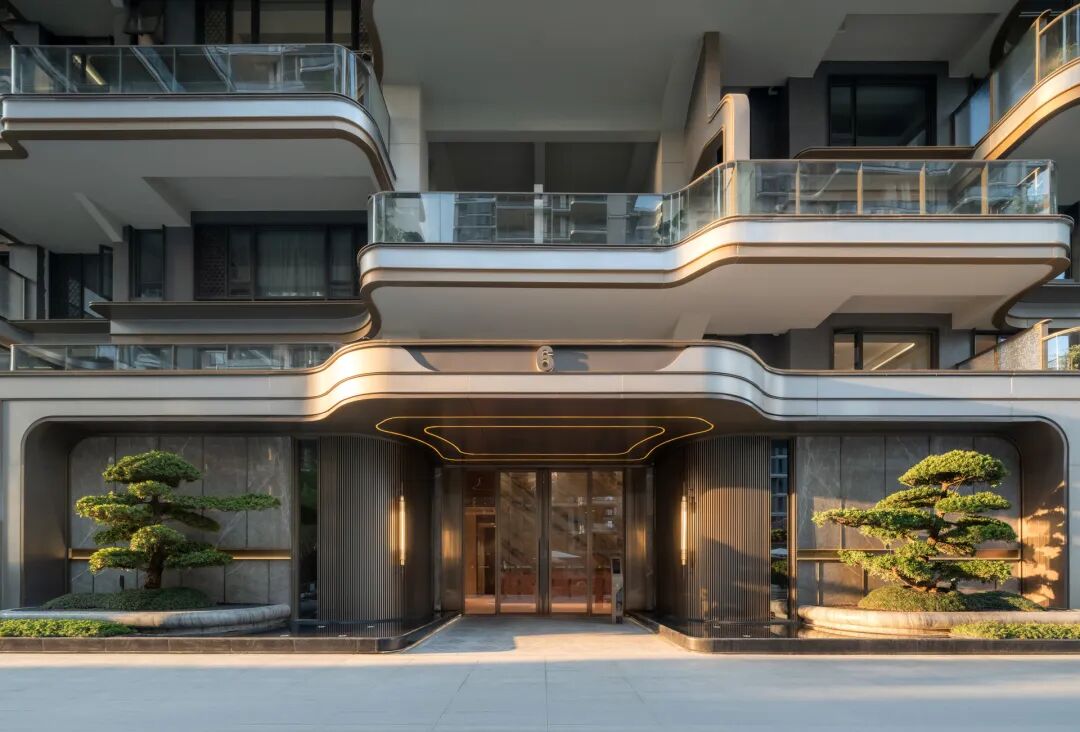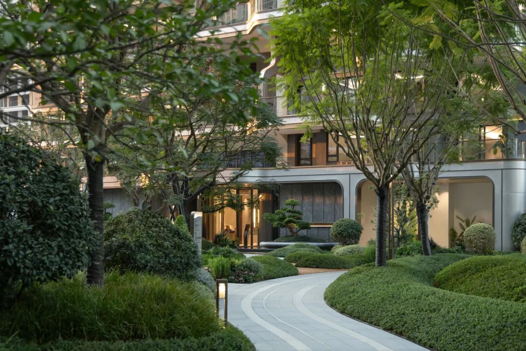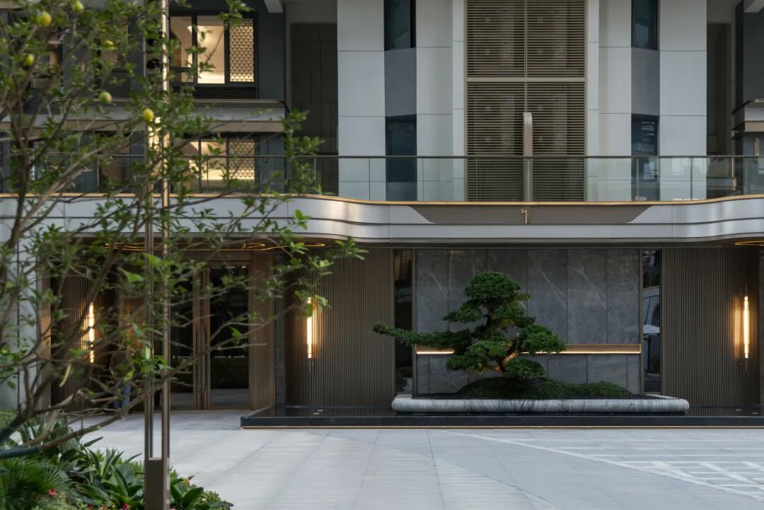 顶级高端入户花园的配置:沉稳的选材及色调;优雅艺术的奢享入户门厅;艺术肌理的品质景墙以及氛围感花园绿植组团;酒店奢享仪式水景;精工定制的贝壳肌理铺装;高级灯具以及专属定制LOGO。匠心造诣,精工选材,体验奢美艺术的礼遇尊享。