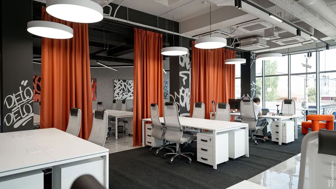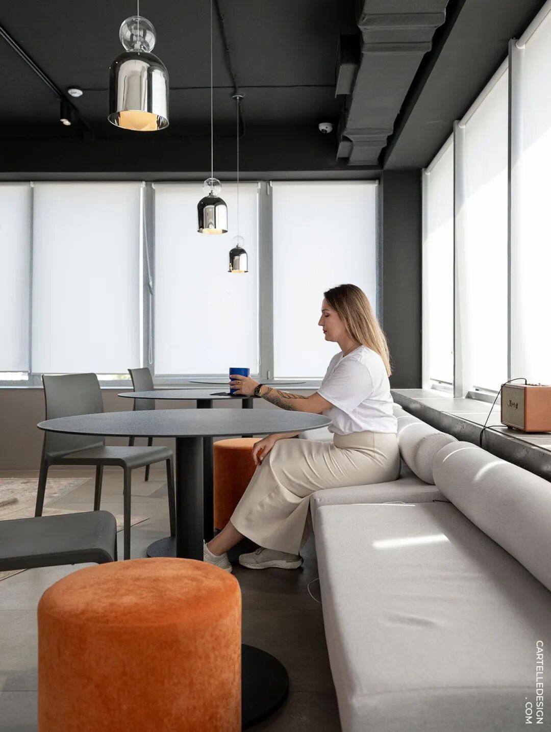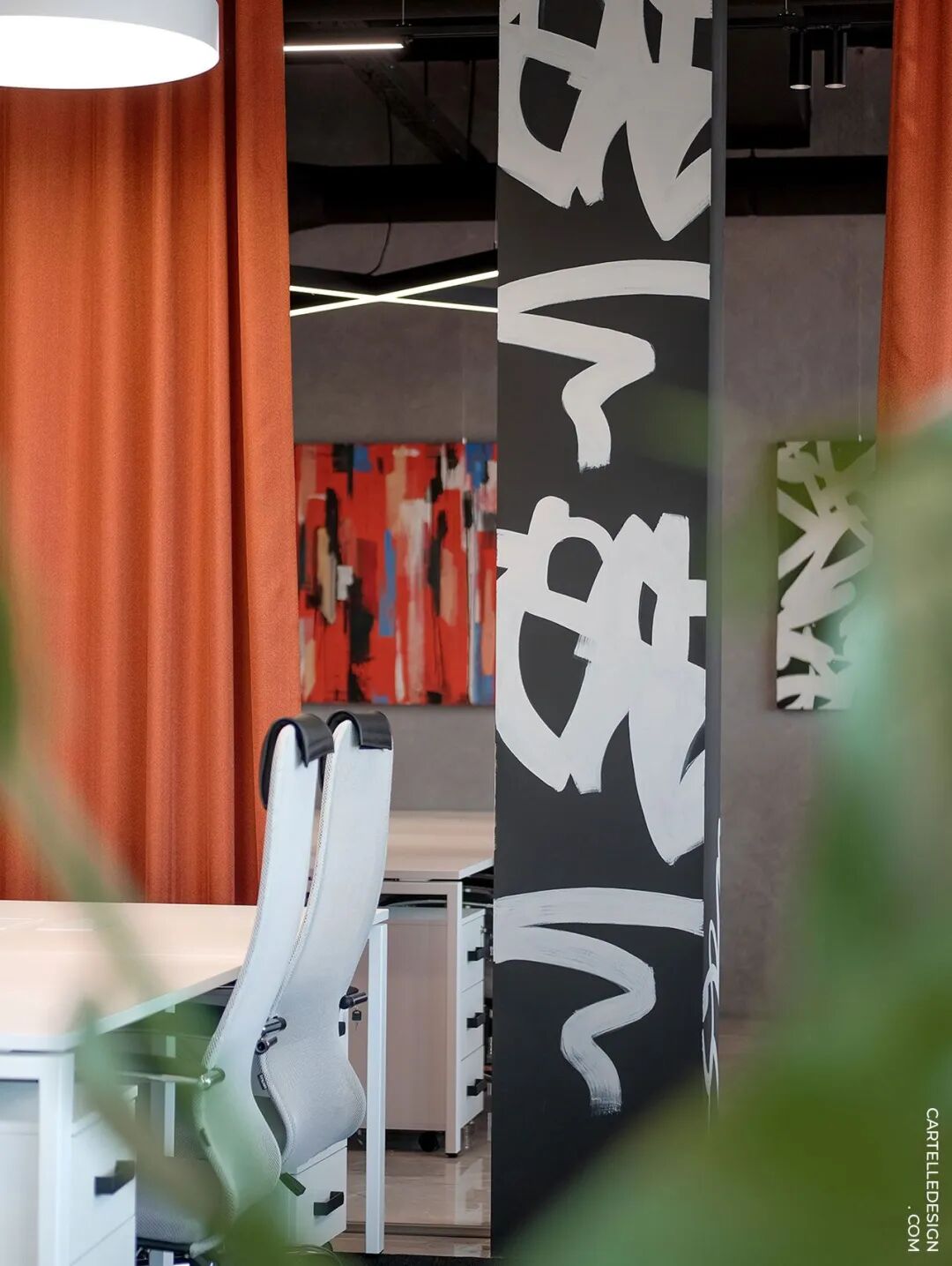 整体设计以黑白灰为基底,通过色彩与图形的巧妙介入,打破了传统办公空间的刻板印象,塑造出一个既契合年轻专业人士审美、又充满创意能量的工作社区。项目总面积818平方米,在理性布局与感性表达之间取得平衡,成为DELO品牌空间中又一具有标志性的“创意引力场”。