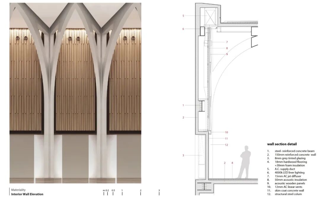 ▵教堂内部的纵向侧壁 ©铉琉工作室