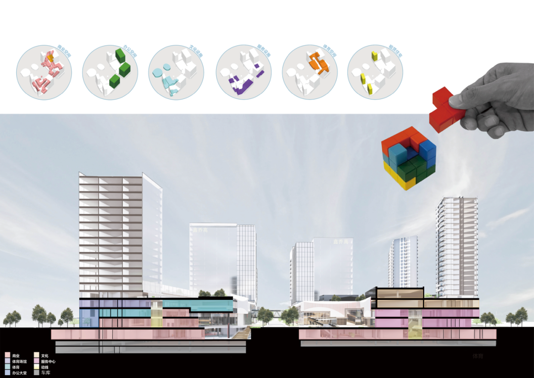 作为总体量超过65万平方米的“鑫耀中城”大型综合开发项目的重要组成部分,其商业部分的设计灵感源自新加坡社区中心所采用的“细胞式”空间组织模式,秉承“以人为本”为核心理念,并深度融合DP于新加坡淡滨尼天地项目中的先进设计经验,精心打造出集办公、商业、住宅、文化、体育及公共服务等多种功能于一体的复合型空间。