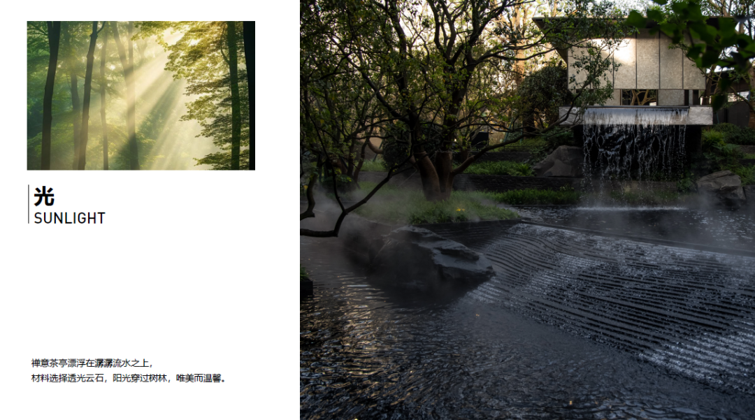 复刻琉璃光院的东方意境,以光为灵感,典藏叠水森岛山水画境,打造自然间的流水茶室。