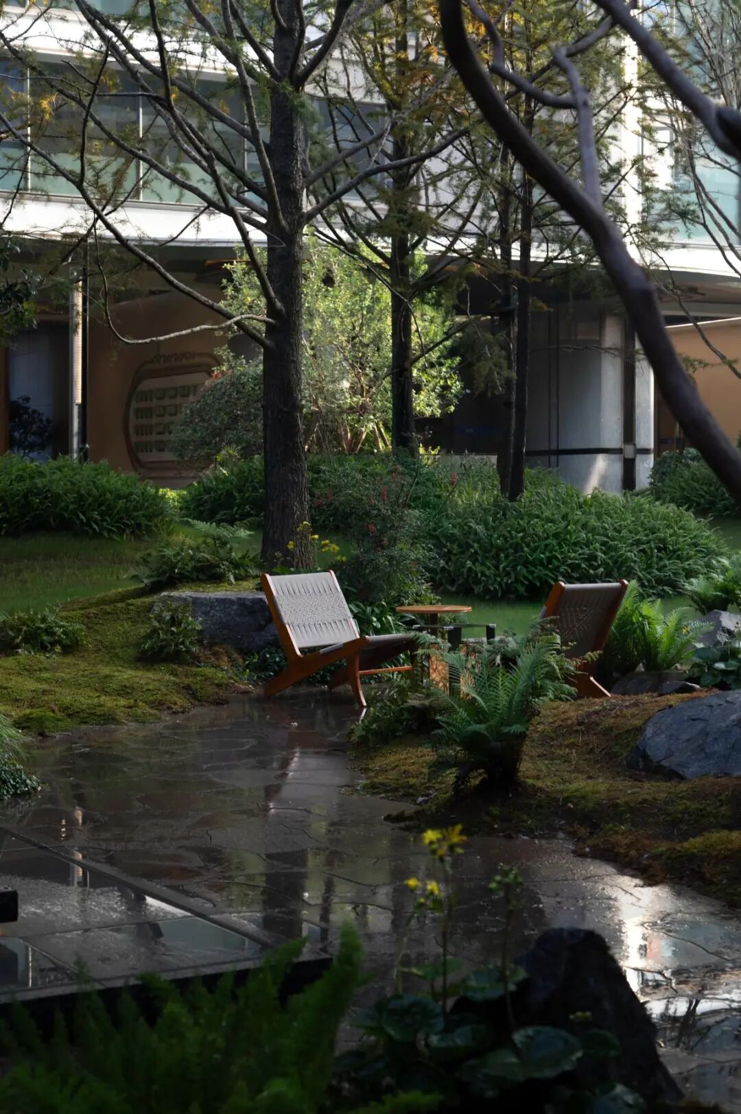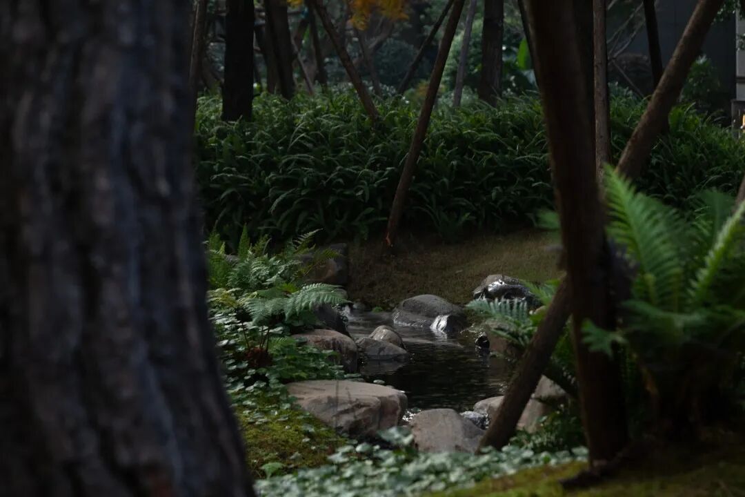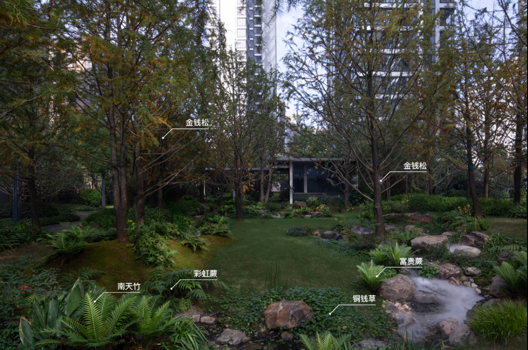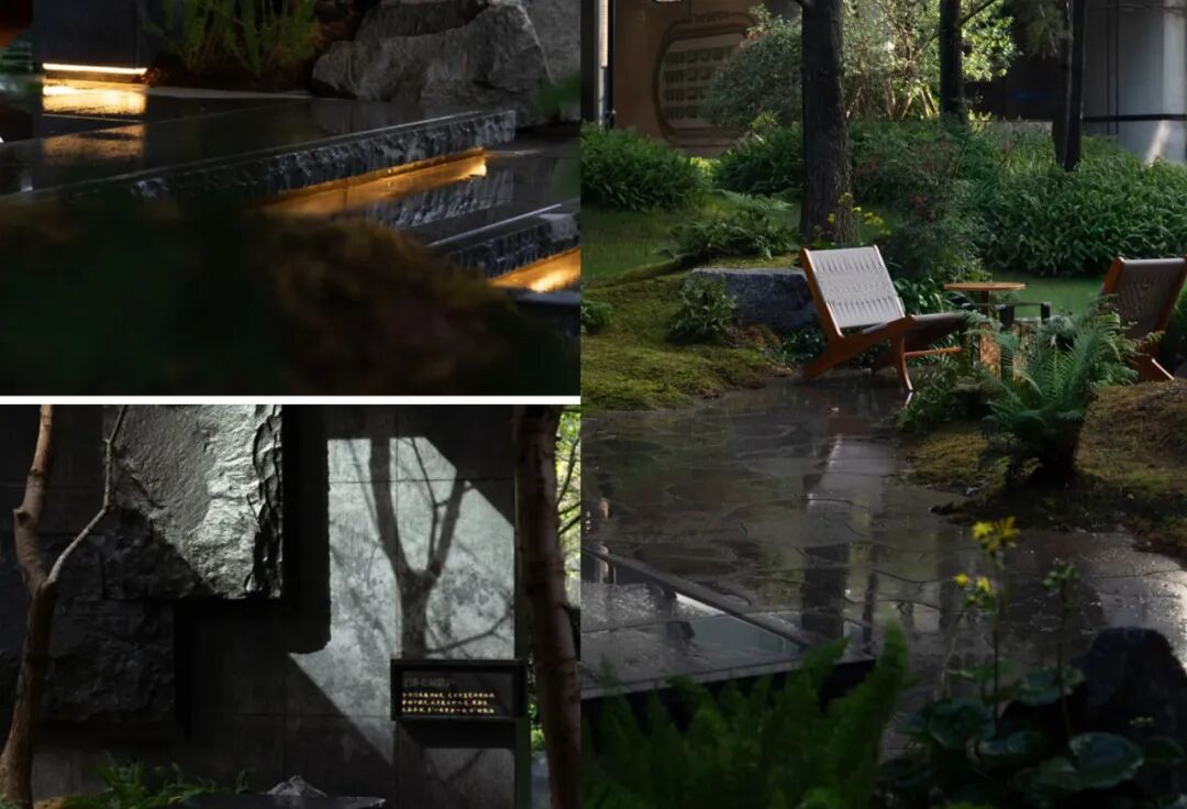 原始加荒面石材搭配苔藓植物,虽质朴却充满雅趣,充满诗意。乔木选取河桦、单杆乌桕等,辅之以苔藓、蕨类植物等,营造自然原生感。