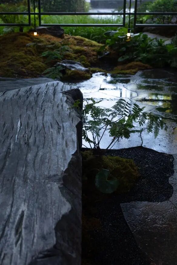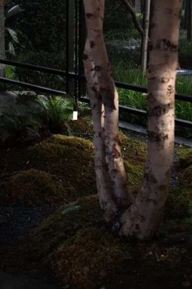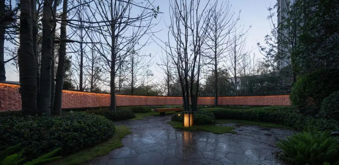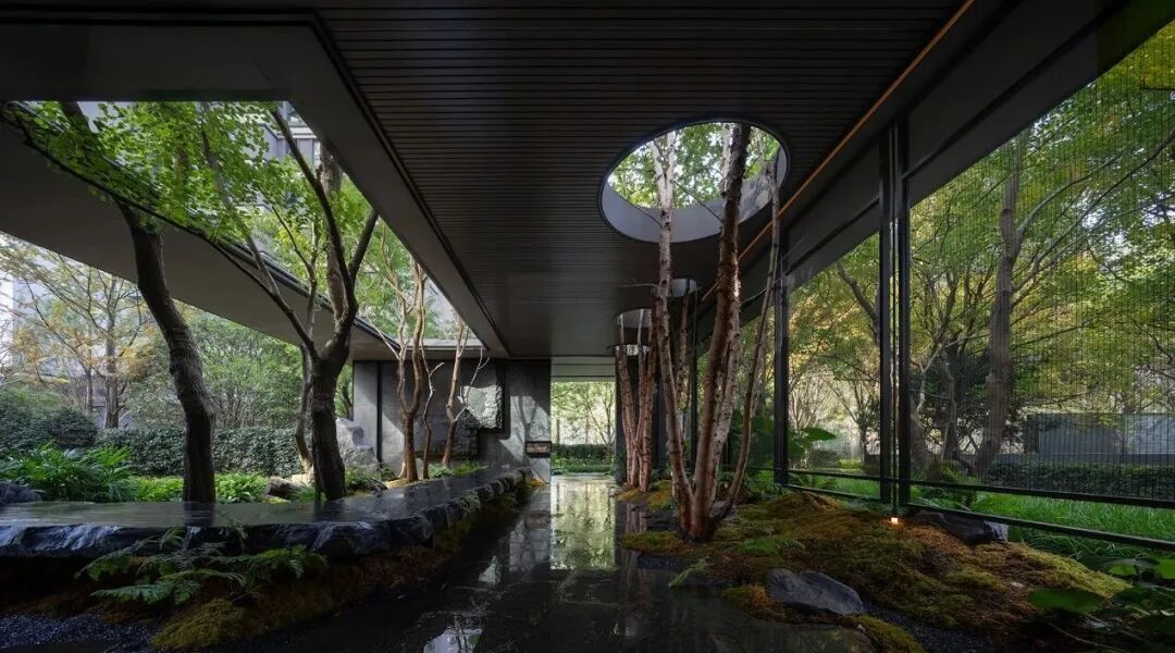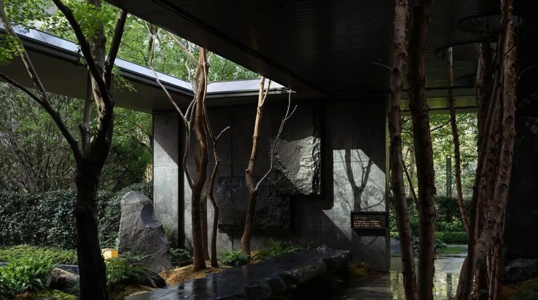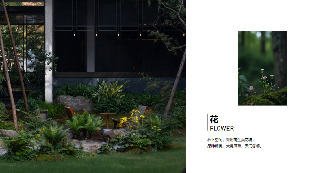 原始加荒面石材搭配苔藓植物,虽质朴却充满雅趣,充满诗意。乔木选取河桦、单杆乌桕等,辅之以苔藓、蕨类植物等,营造自然原生感。
