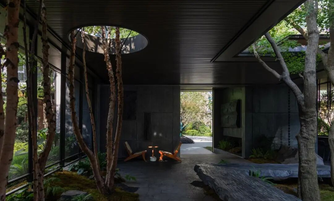 视线借缝隙轻轻流动,墙不围界,景不为限,只留一隙让自然漫入,空间遂成呼吸着的风景,那处精心留白的缝隙,恰是自然悄悄漫入的呼吸。