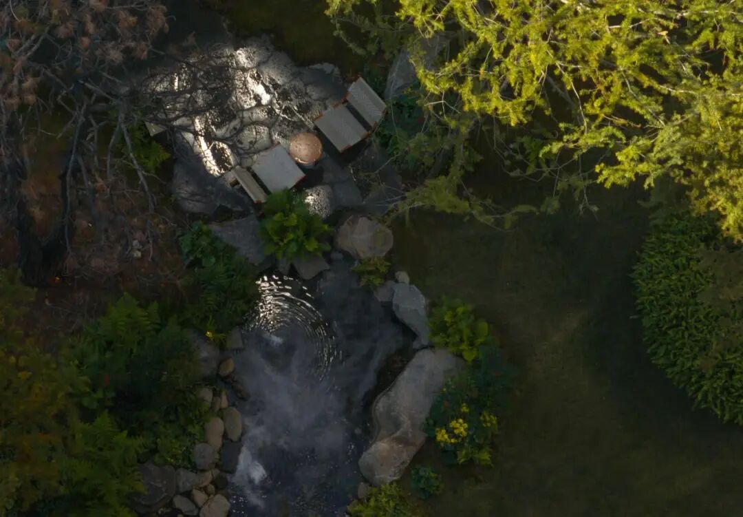 ▲落地上,花镜反复推敲,施工配合紧密(相比常规精致水景的做法,这种最贴近自然的呈现反而要更费心思和功夫)