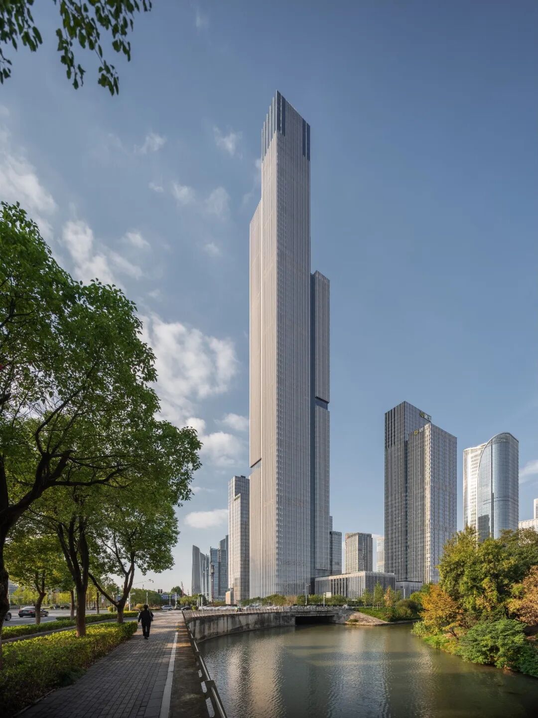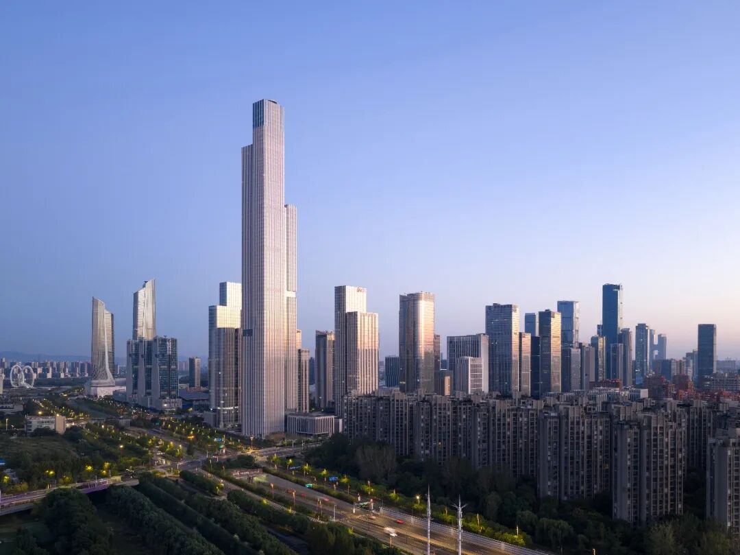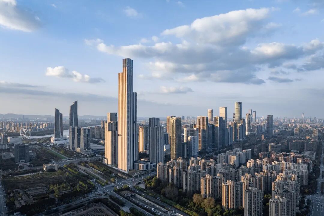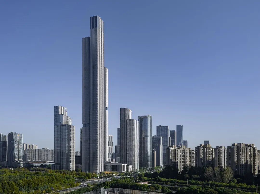 由gmp·冯·格康,玛格及合伙人建筑师事务所规划设计的南京金融城二期(现命名为紫金金融中心)已全面建成,目前正处于竣工验收申报阶段。随着C地块最终完工,一座高达416.6米、88层的超高层塔楼——紫金金融大厦正式落成。该塔楼不仅是gmp成立以来设计并建成的最高建筑,也是南京市主体结构高度最高的建筑。其挺拔且层次分明的体量塑造出鲜明的城市形象,为南京天际线增添了一座极具辨识度的新地标。