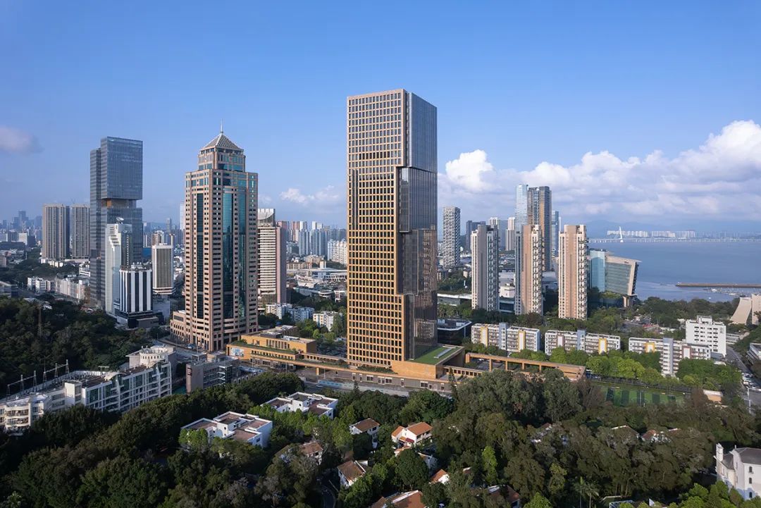 在功能和宁静之间保持平衡,时间广场为深圳充满活力的蛇口区提供了高效的办公空间,配以精致的细节和宁静的城市花园。