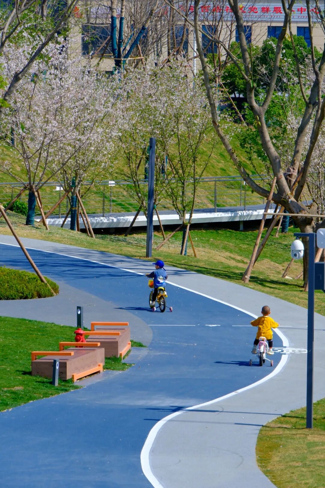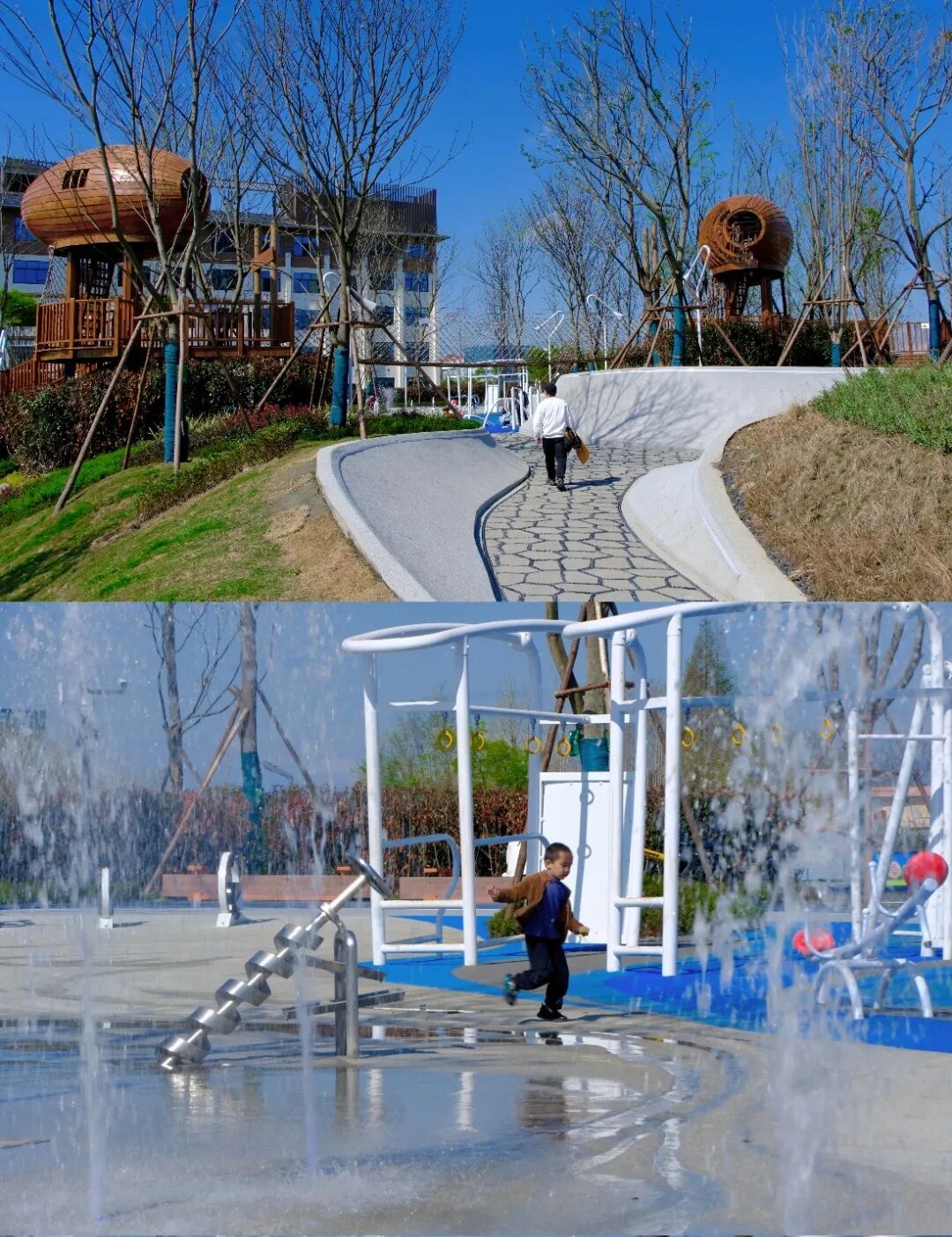 作为成都高新西区最新打造的城市绿岛,公园以“开放、共享、融合”的理念,对场地边界进行了模糊处理,将城市导入公园,将公园引入城市,成为高新西区蓝绿体系的关键节点,形成合庆里公共空间活力圆环。同时,公园将低碳绿色理念贯穿设计和建设全过程,海绵设施和太阳能光伏板等新型技术应用,让人们在逛公园的同时亲身体验到绿色低碳生活,既寓教于乐又能亲近自然。