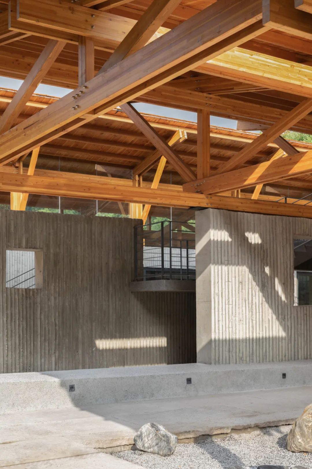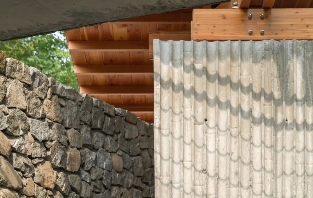 Wood structure and bamboo formwork concrete wall clearly organized together©赵奕龙