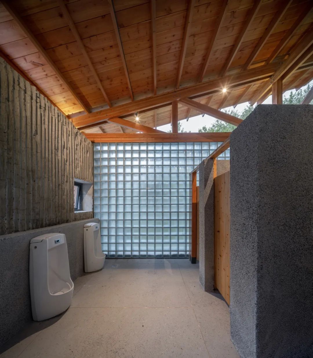 The oblique rubble wall separates the service center from the public toilet©赵奕龙