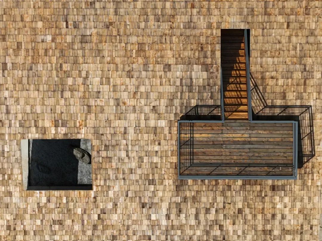 Fish-scale shadows on the shingle roof at sunset©尌林建筑