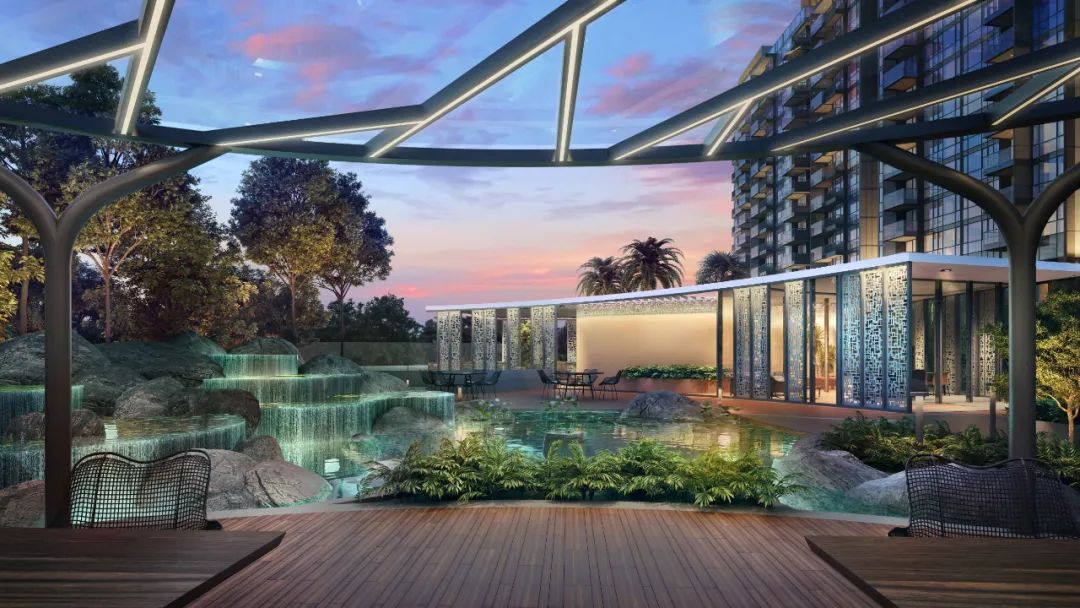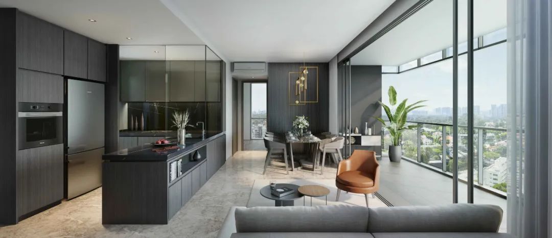 设计综合考量各方因素规划了各单元的布局,在满足现代生活需求的同时,确保居民有充足的生活与娱乐空间。不同于市面的常规住宅,设计将大部分单元的客厅与餐厅功能并排设置,营造出利于家庭聚餐、朋友聚会的社交空间,为住户及其亲友带来难忘的体验。宽敞的阳台和客厅空间有机结合,让住户可以在荷兰山郁郁葱葱的美景之下,在家举行大型派对。塔楼整体外观奢华典雅,玻璃幕墙让人目不暇接的,无与伦比的尊贵的气氛。At Hyll on Holland, the unit layouts are thoughtfully designed to cater to modern-day living, ensuring that residents have ample space to live and entertain in style. The rare side-by-side living and dining concept in most of the units is perfect for family and friend gatherings, allowing residents to create unforgettable memories with loved ones. The generous balcony space is well-integrated with the living room, providing an opportunity to host big parties at home while enjoying the lush views of Holland Hill. From the outside, the stunning glass curtain façade of the towers is a sight to behold and exudes an unparalleled atmosphere of luxury and exclusivity.厨房空间的设计基于多功能性的考量,提供了满足亚洲及西方各类烹饪风格的玻璃推拉门,让住户在烹饪的同时,可以一览周围自然美景,拥有探索美食的独特烹饪体验。The kitchen space is designed with versatility in mind, offering glass sliding doors that cater to both Asian and Western cooking styles. This creates a unique culinary experience for residents, allowing them to explore and experiment with different cuisines while enjoying the stunning views of the surrounding natural beauty.Side-by-side living with dining and balconyHyll on Holland将为住户提供舒适的生活体验作为设计愿景,而实现这一愿景的背后不仅仅是提供豪华的设施。团队采取了多项举措,其中之一便是将通风有意识地融入设计之中。新鲜的空气对于保持室内空气质量起着至关重要的作用,设计在客厅、餐厅和厨房区域特别采用交叉通风,并在浴室采用自然通风。这一可持续且生态友好的解决方案,通过自然风循环,降低了对机械通风系统的依赖,从而减少了能耗,有利于可持续发展。Hyll on Holland's commitment to a comfortable living experience goes beyond just offering luxurious amenities. One way that this is achieved is through the use of cross ventilation through the living, dining, and kitchen areas, and natural ventilation in the bathrooms. A conscious decision was made to incorporate this feature into the development’s design, recognising the importance of fresh air in maintaining optimal air quality. By using natural ventilation, Hyll on Holland provides a sustainable and eco-friendly solution that reduces the reliance on mechanical ventilation systems, resulting in reduced energy use hence a more sustainable development.Hyll on Holland的设施尤为出色,为住户提供了多种放松身心的选择。住户可以在被绿荫植被包围的游泳池中畅游,或是在拥有最先进设备的健身中心锻炼身体。此外,项目还设有儿童游乐场和会所,为住户提供更多娱乐和休闲选择。The amenities at Hyll on Holland are exceptional, providing residents with endless options for relaxation. Residents can take a dip in the swimming pool or work out in the state-of-the-art fitness centre, surrounded by lush greenery. The development also features a children's playground and a clubhouse, providing residents with entertainment and relaxation options.Swimming Pool overlooking Holland