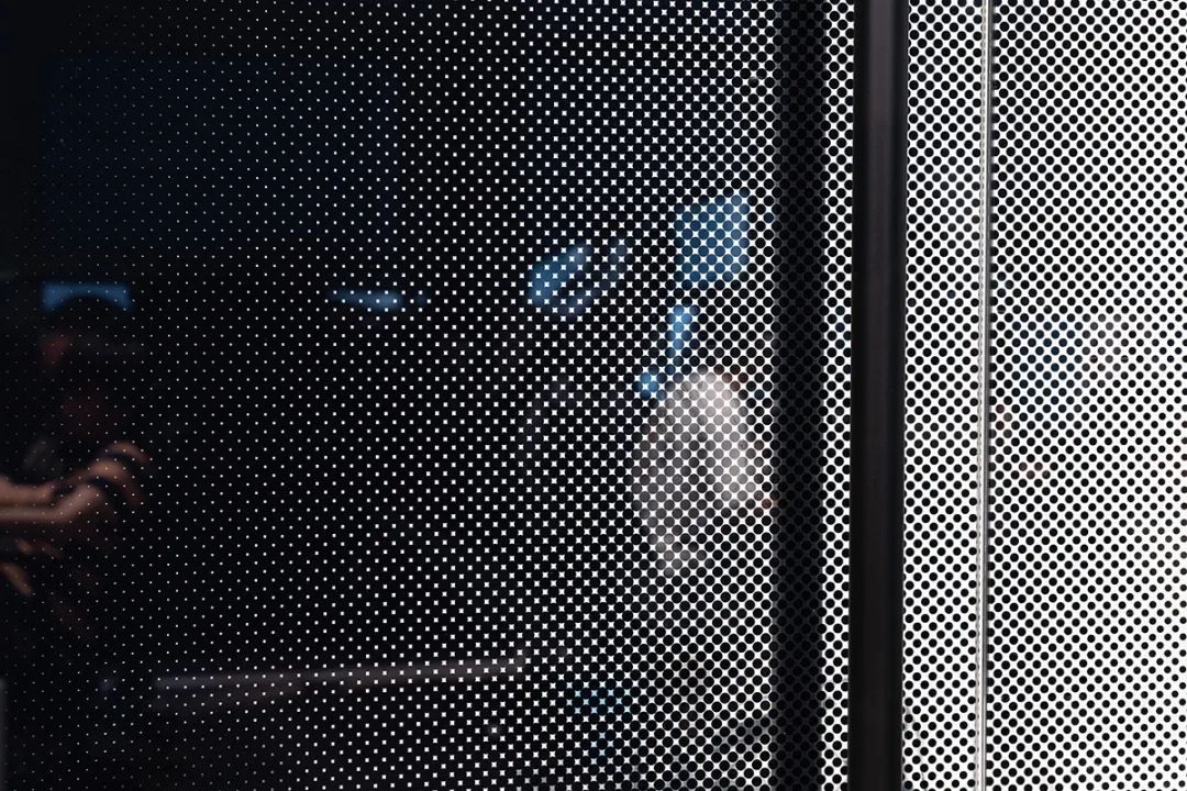 黑色波点排列形成的渐变效果,同时保证了人视点的视线通透与疏离。