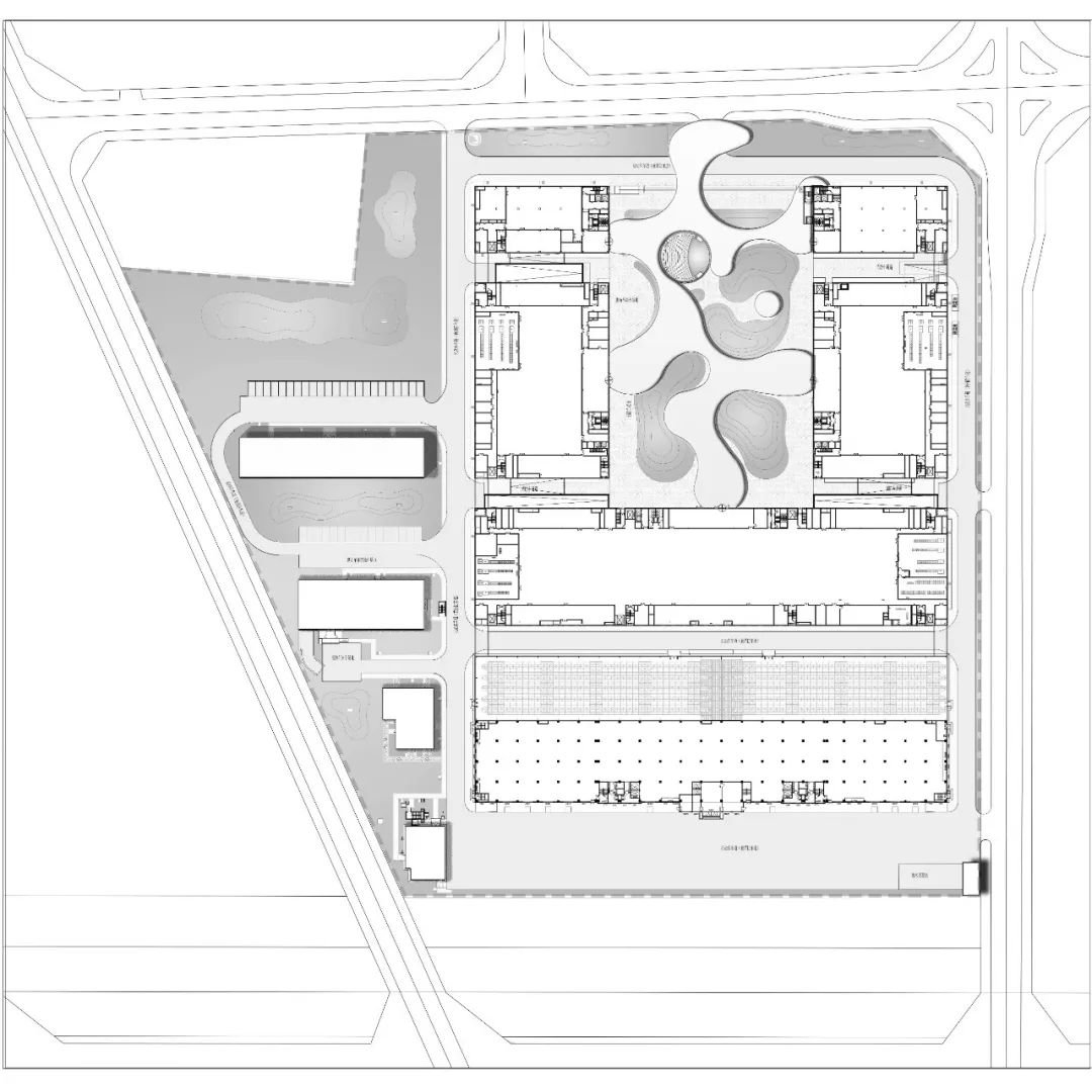除了南侧物流集散广场以外,厂区的其它区域的地面不再铺满叉车和货车,一个高效、智能化的物流体系被收纳到了建筑内部和地下空间,把地面尽量还给景观和人群。