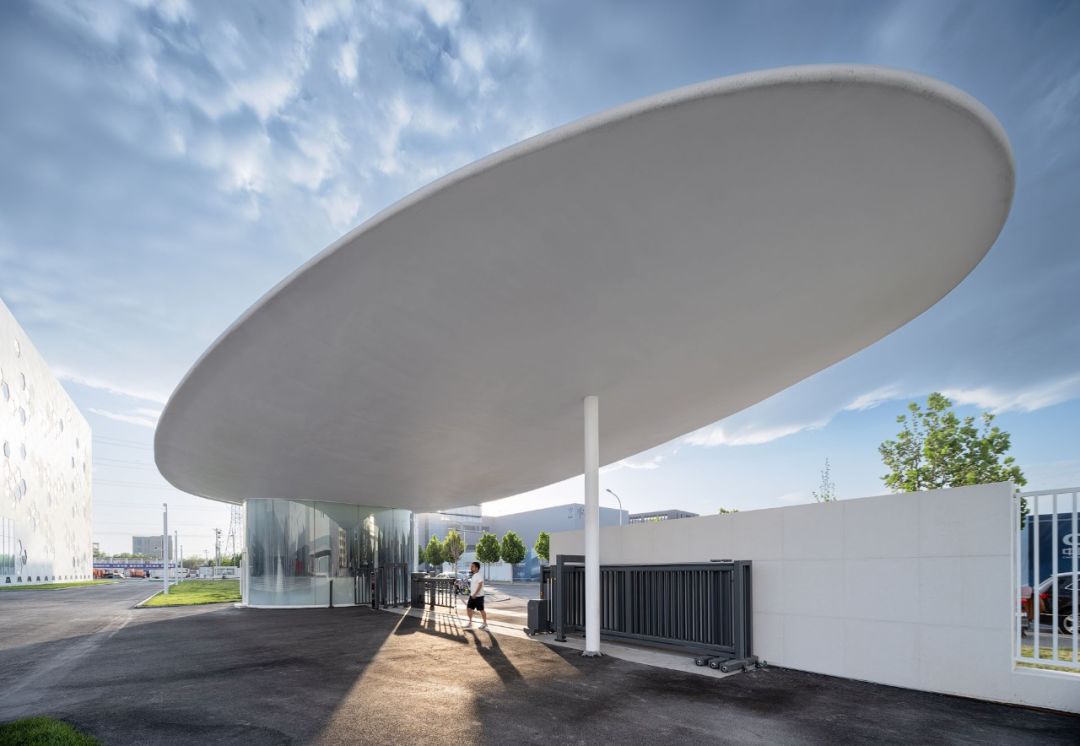 最终我们和业主一起确定了具有一定漫反射的白色铝板表面。白色不仅表达着洁净,也暗示着未来。在周边呆笨的工业厂房群中,这一组理性的、白色的、极少主义的、技术至上的建筑群无疑会成为最卓尔不凡的存在。