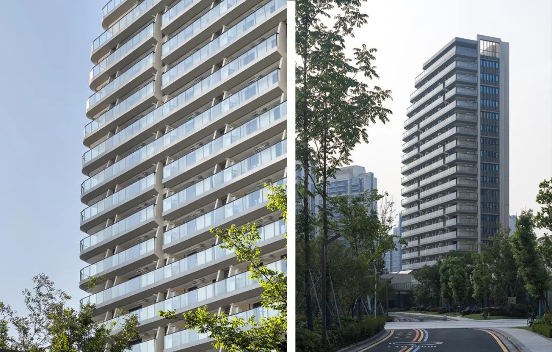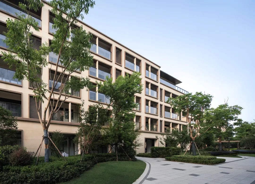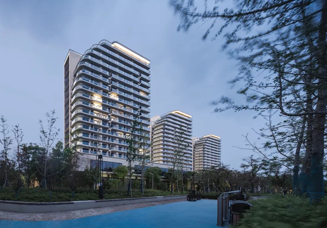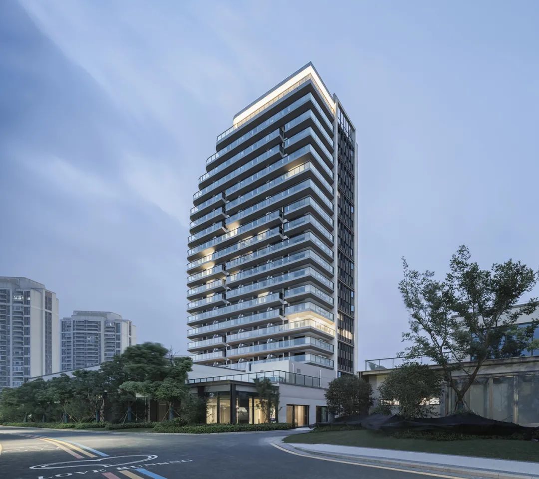 立面设计注重因地制宜整体协调,强调整个颐养中心高层、多层、配套公建风格的统一协调。主体立面简约对称,注重比例与材料的配合,于基座、每层层线及檐口加以细部处理,典雅高贵、大气庄重,极具品质感。