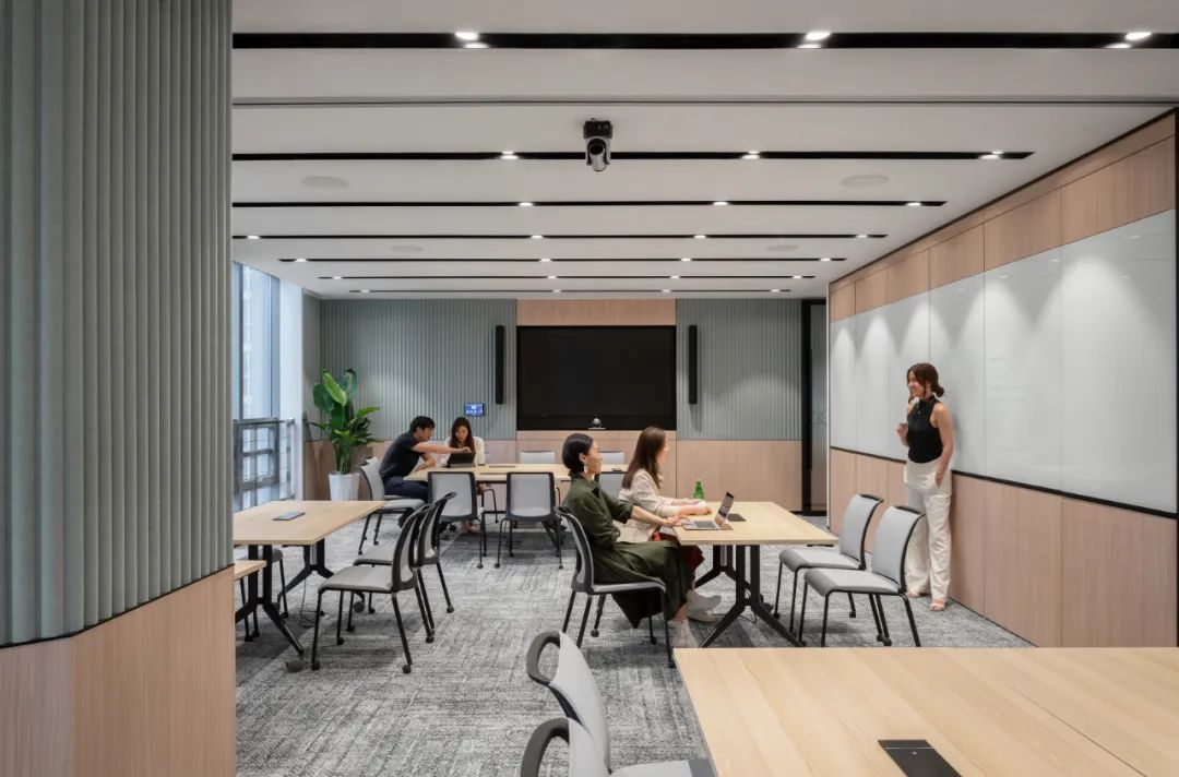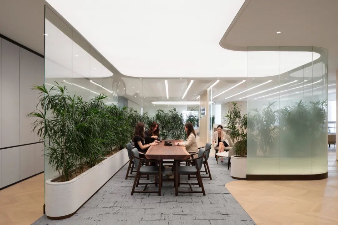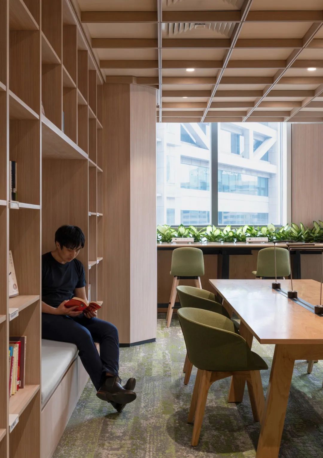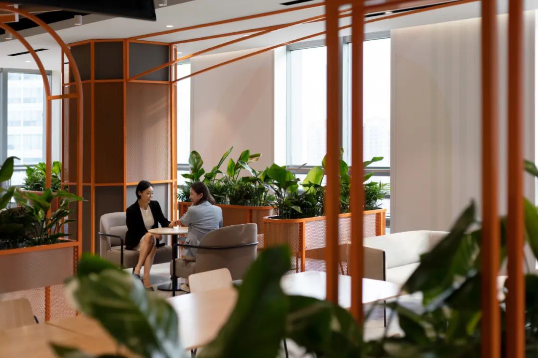 “创新”元素的融入体现出“多元、包容、动态”的体验原则。除传统工位外,任务区包括了临时办公区、开放式工作舱、即兴协作区、专注舱和静息空间,以适应不同的工作模式和需求。员工透过数字导视系统和移动应用程序,可获取工位实时使用及在线预订情况,从而提升工作效率。