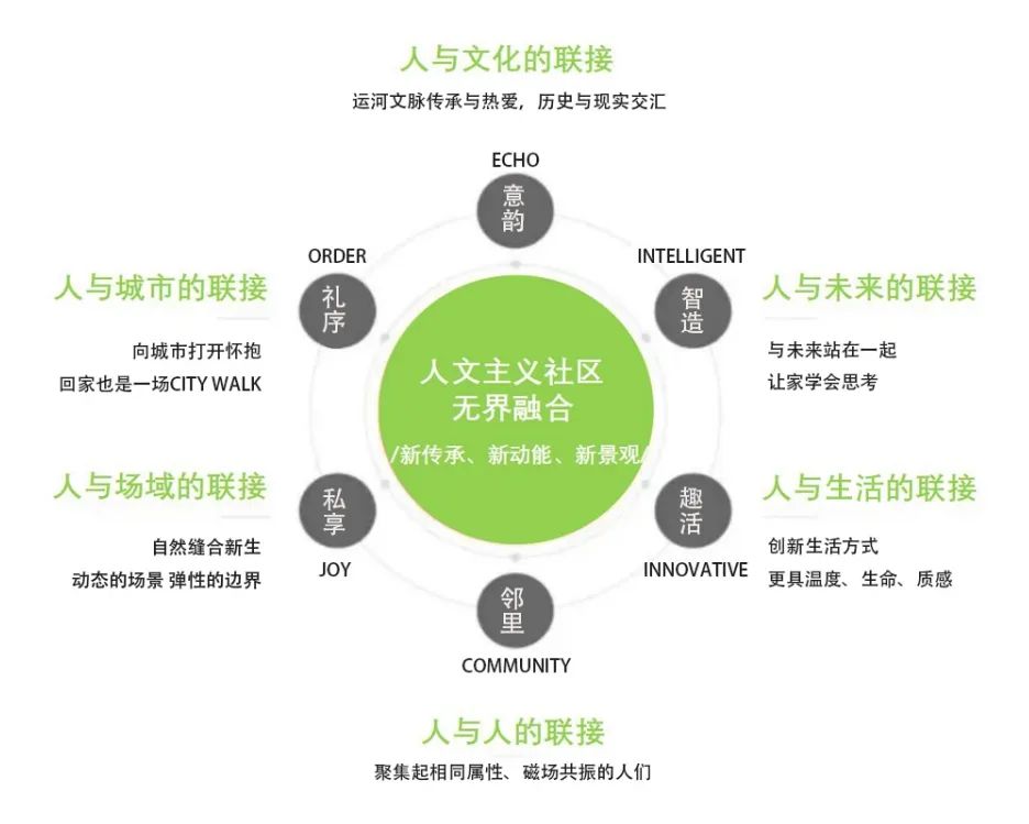本案近邻京杭大运河,一条从历史流向未来的千年文脉带来了悠久的历史文化底蕴,带来了“多元融合”的新兴业态,也带来了“新传承、新动能、新景观”的聚能新生。历史与现实于此交汇,独特的韵味与时代需求环抱迭起,在运河之畔一场都市新烟火主义生活美学正在沁润浮生。