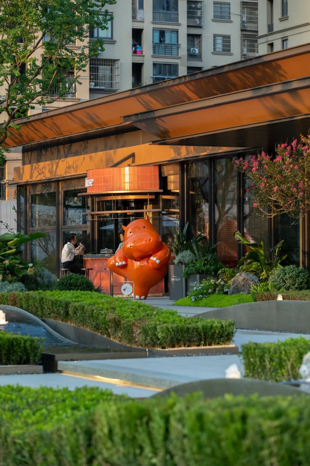 日暮晕染的林间晓风形成“全景宽屏橱窗”,在植物景观的映衬下不乏精奢与艺术之美。我们以“河马IP”推演为落日形象,强化“街区标志”,打造具有昭示性的视觉锤点,活力灵动又抓人眼球。路上的行人只是路过也会被这一街区聚场吸引,步入其中来一场发掘探索的“CITY WALK”。