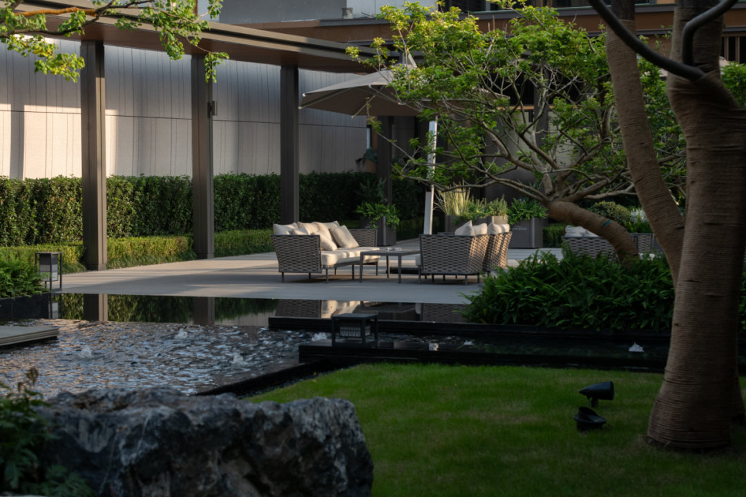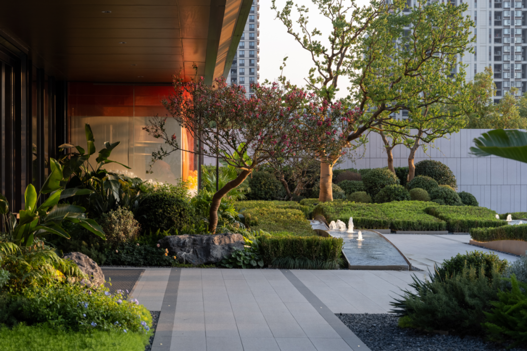 我们以“大树聚场”打造核心景观空间,微风与文脉有着天然的聚合力,婉约细腻的植物组合营造出杭州江南那份独特的人文水林韵味,漫步于此,心中涌起一股久违的喜悦,静谧守望,如故弥新。