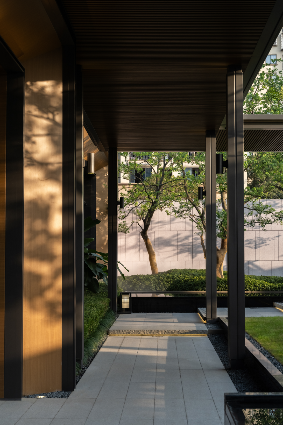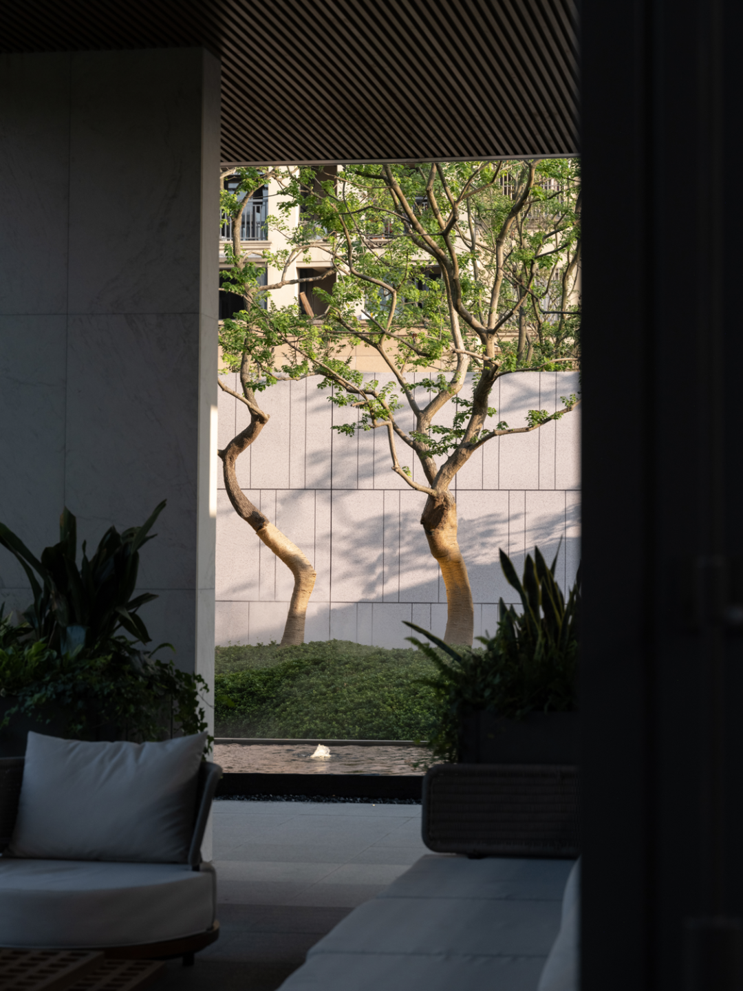 “在都市主义与人间烟火的徜徉中,自然写意是最好的衔接”,漫步来到后场庭院。区别于前场的社交、互动、多业态组合空间,后场更注重自在休憩与自然聚场打造,更注重于地缘文脉记忆之上,传承历史文化,拉近人与城市、场地、空间的距离。