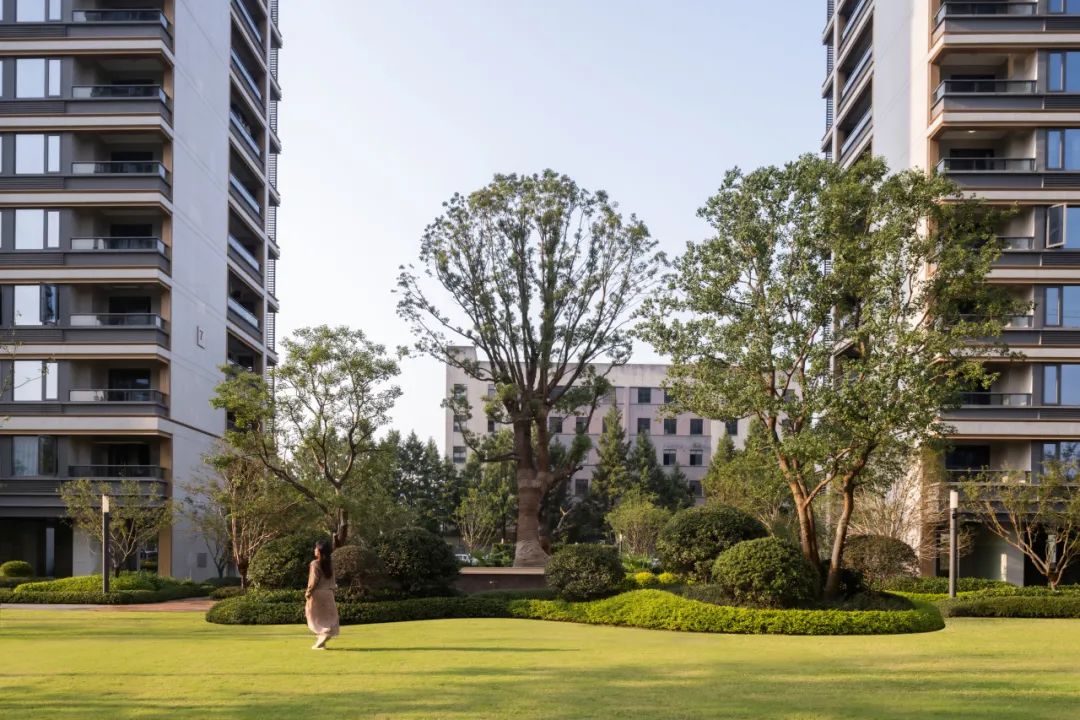 本案位于杭州拱墅区北部,原场地中间有一棵保留的老香樟,天承美筑的故事起源于这棵古树,它为场地增添了一抹绿,我们在此也栽下了一颗崭新的希望。