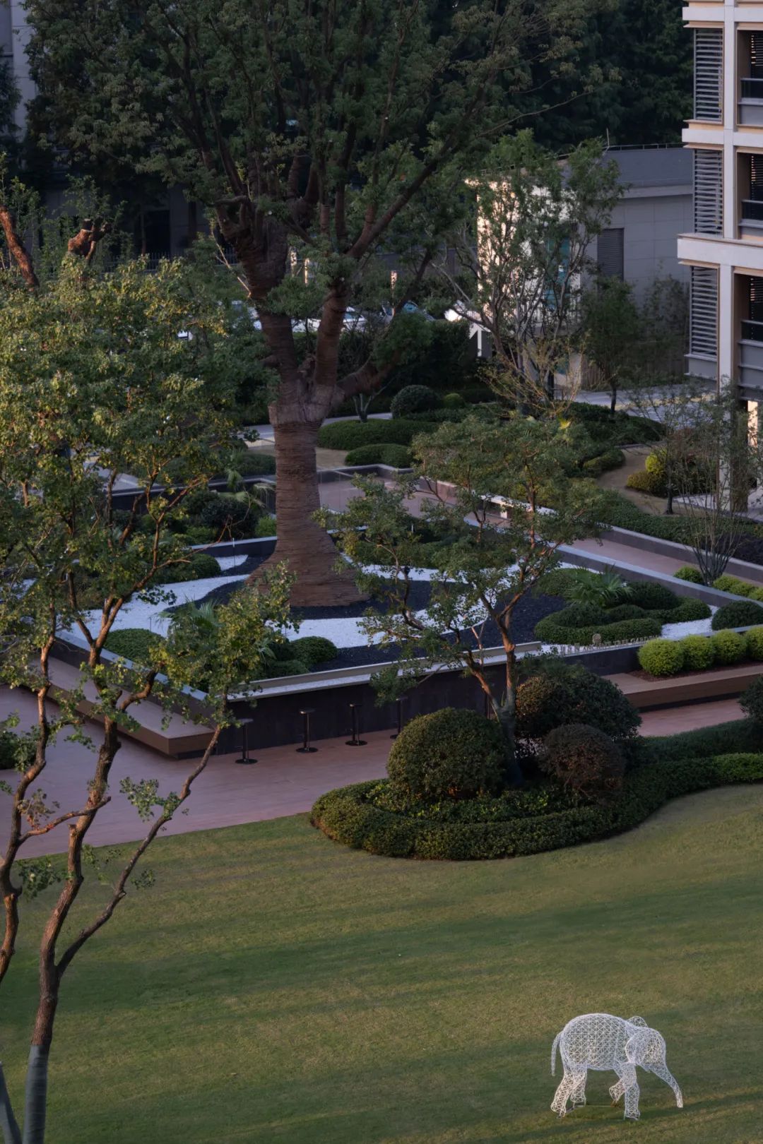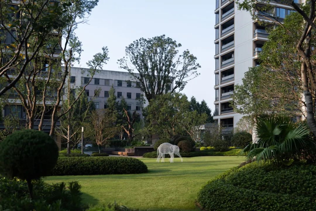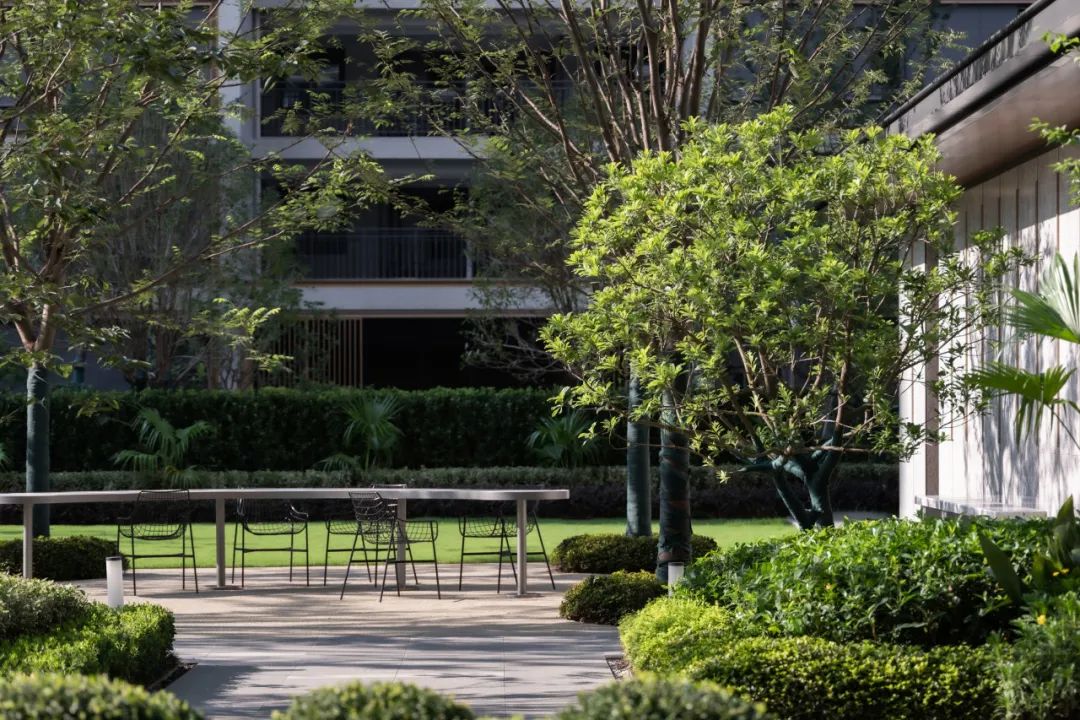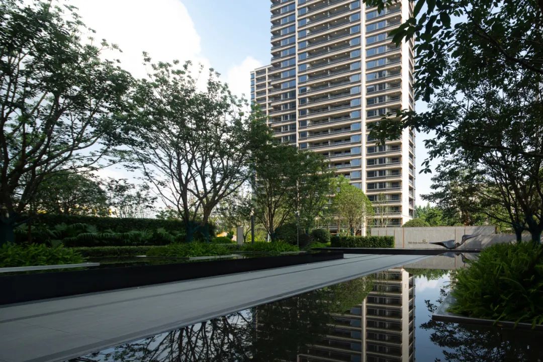 天承美筑的景观设计将东方哲学融入现代建筑语境,创造出一个致力于美好社区生活的共享花园。