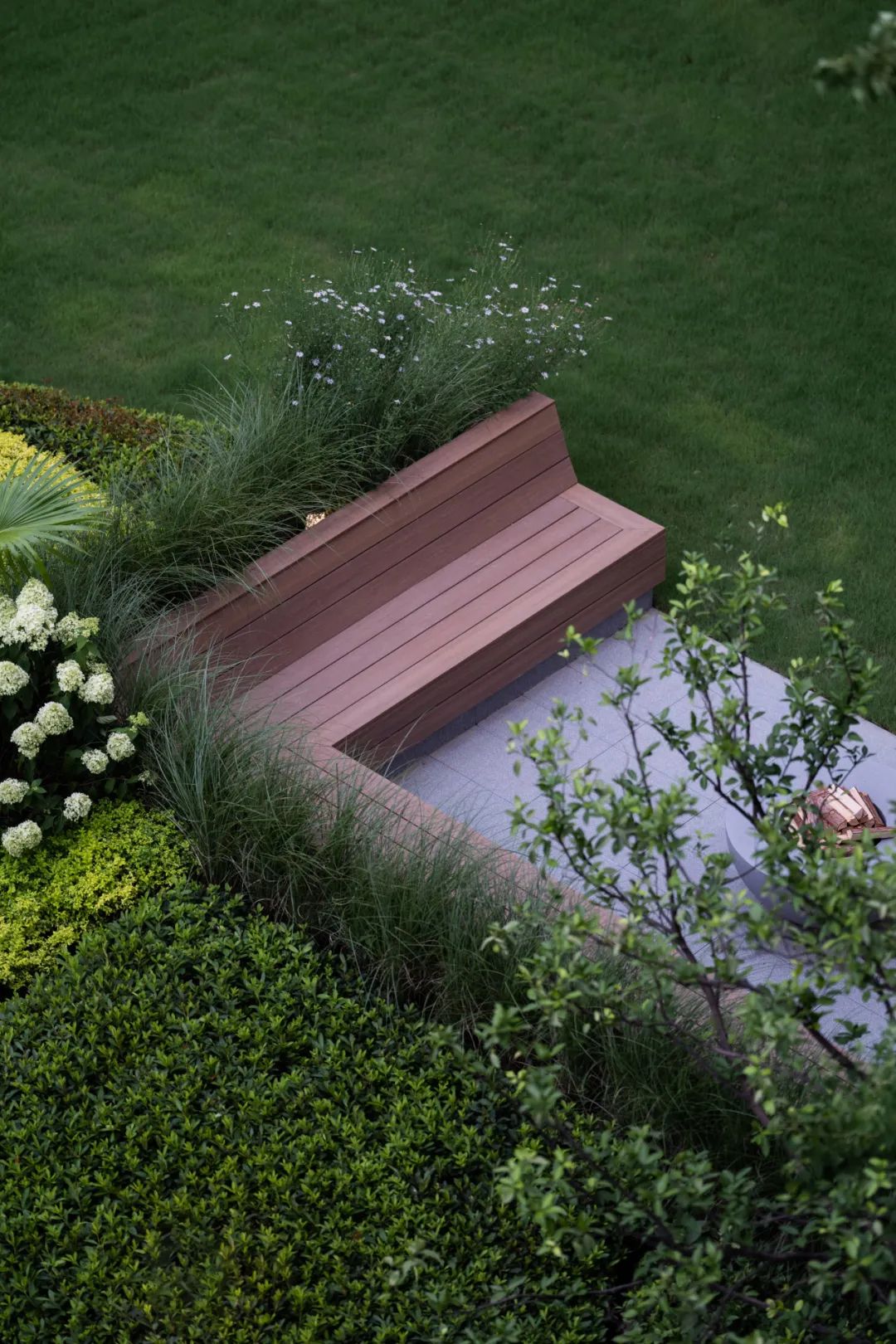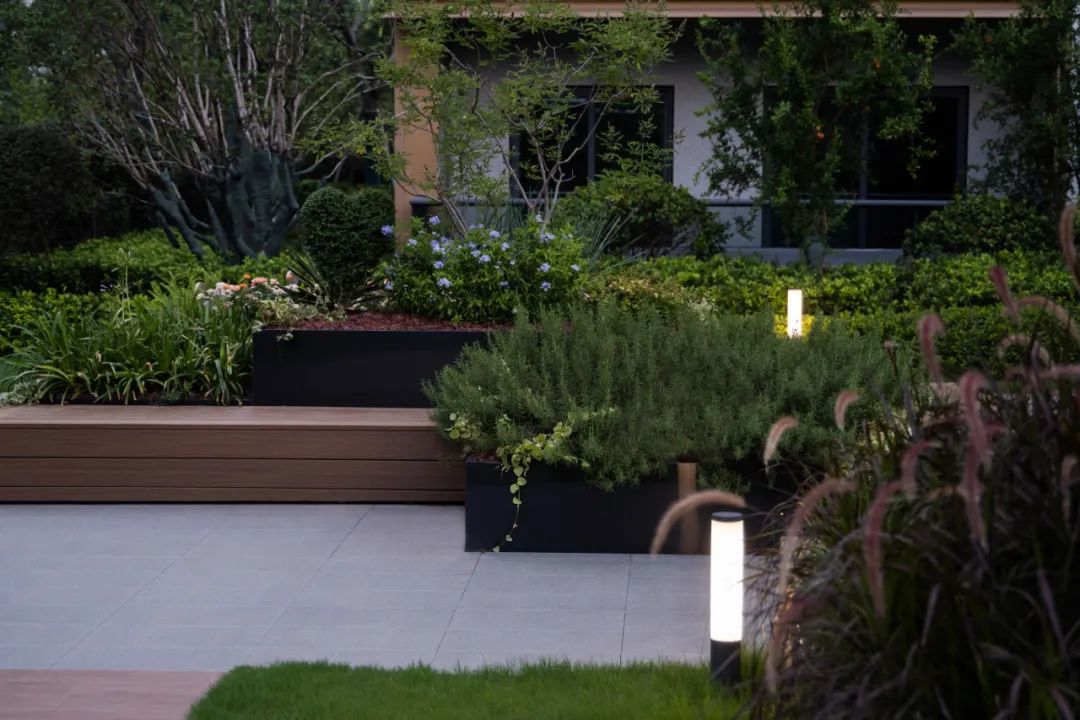 靠近花园的西侧,巧妙地布置着造型各异的绿植,勾勒出大自然的绿意纹理。在这片广袤的草坪上,我们可以尽情享受这份宽敞和宁静。