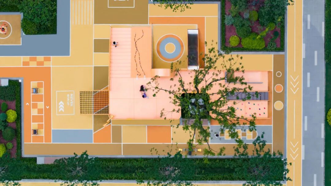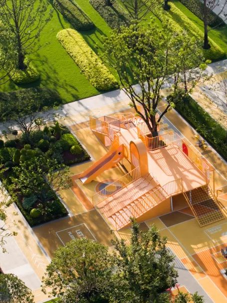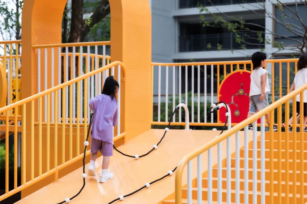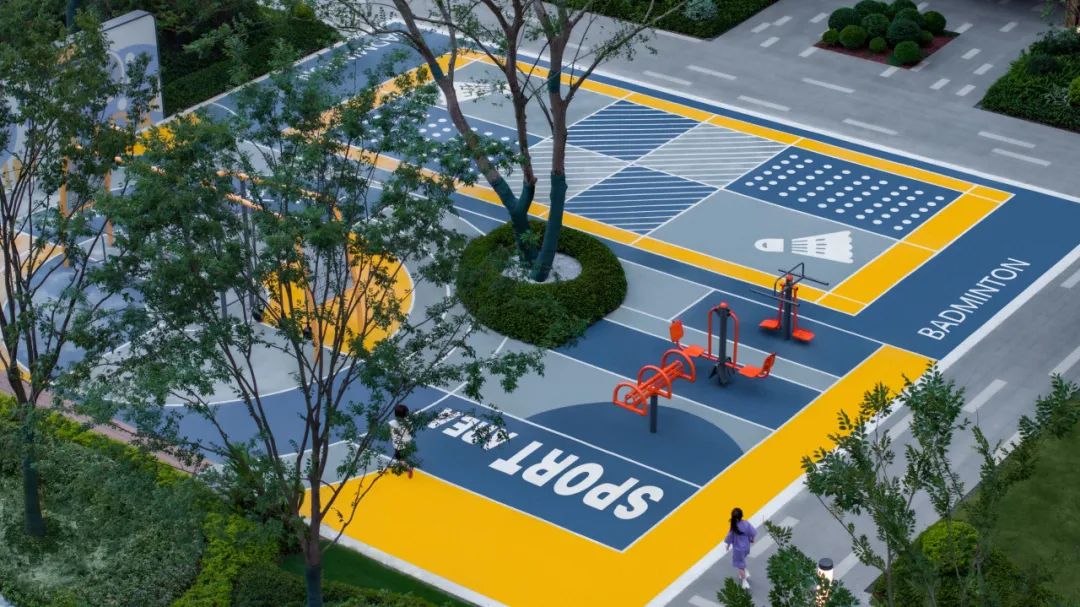 社区的东侧设置了一个“芽儿”乐动园和青春热力场,象征智慧的黄色地垫配以橙色及灰色的点缀,交织出了一个芽儿乐动园,配合高低起伏的地形和运动健身的器械,满足全龄段孩童的需求,给下一代以新的活力和追求。