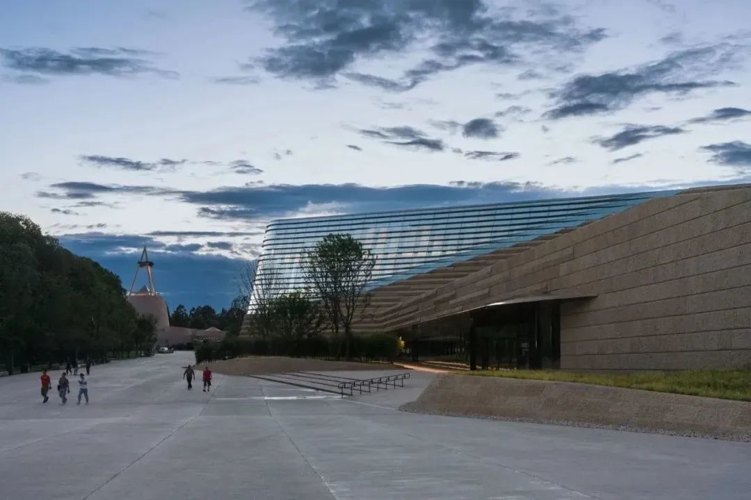 新馆的建设不是一个孤立的项目,而是着眼于整个园区功能和流线的重新梳理。园区现存两条不同年代形成的轴线,已有建筑布局较为零散。设计重新规划了整个园区的参观动线,形成从新入口广场开始,串联新馆、2号老馆、祭坛,文保中心、1号馆的逆时针参观环线,让园区重新融合成为一个整体。原大门位置老游客中心和停车场进行改造,加建游客排队入园的雨棚门廊,园区内建设游客卫生间、地下管线和防涝水渠等一系列提升工程,为博物馆园区未来数十年运营建立良好的基础。