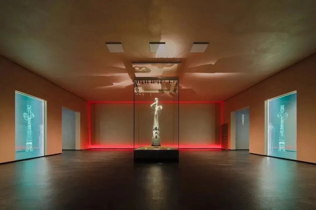 三星堆博物馆的展陈流线不同于综合类博物馆,是一个按照考古叙事逻辑编排的连续序列。这要求大空间展厅首尾相连,形成电影一般的叙事。新馆的展厅设计采用折线式串联设计,也兼顾了并联开门的可能,为展陈提供最大的灵活性。