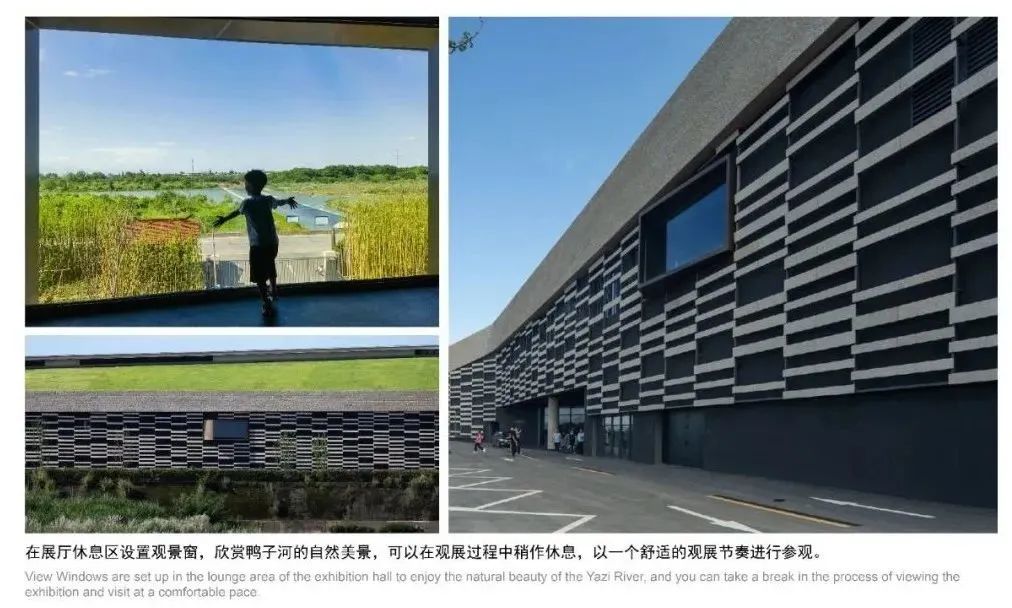 自序厅开始,游客可以按照 “一笔动线”连续参观全部展厅,也可以自主选择观展。为了缓解游览过程中的疲惫感,游线沿途设置了观众咖啡厅、文创商店、开放剧场、休息廊道等设施。空间中还有特别的“彩蛋”——二层文物展厅临河的区域,专门设计了三处休息区,大玻璃全景视窗可以一览鸭子河的风光,让观众在观赏历史宝藏的同时,重新感受到这条流淌古今,哺育了灿烂文明的长河,一瞬之间穿越千年。