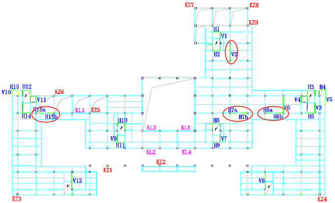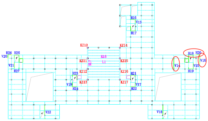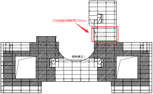 C.掉层柱及连接薄弱部位竖向构件加强:结构单元Ⅰ1层为掉层,接地端未设置结构板,故2层为上接地层。将2层整个结构构件设置为关键构件,满足中震弹性要求;适当增大2层及以下柱截面;局部单跨区域梁柱截面、配筋适当增大。