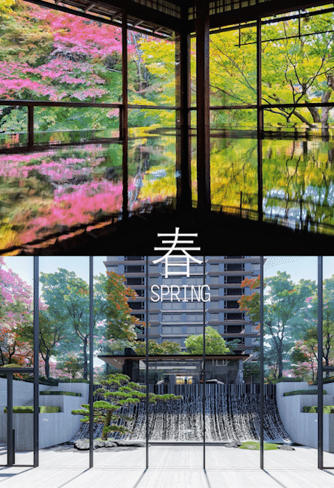 春日夜晚观览樱花盛开的景致,夏日避暑于绿荫之间,秋日远眺满山红叶,冬日享受初雪飘落…