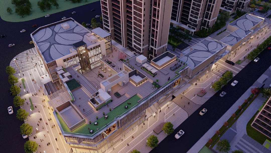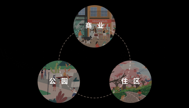 万科·星耀都荟充分尊重了上位规划中的定性,将项目北侧和南侧规划为商业和公园,有效衔接城市,也为社区提供商业和绿色生活配套。整体打造出复合型商业、公园、居住综合体。
